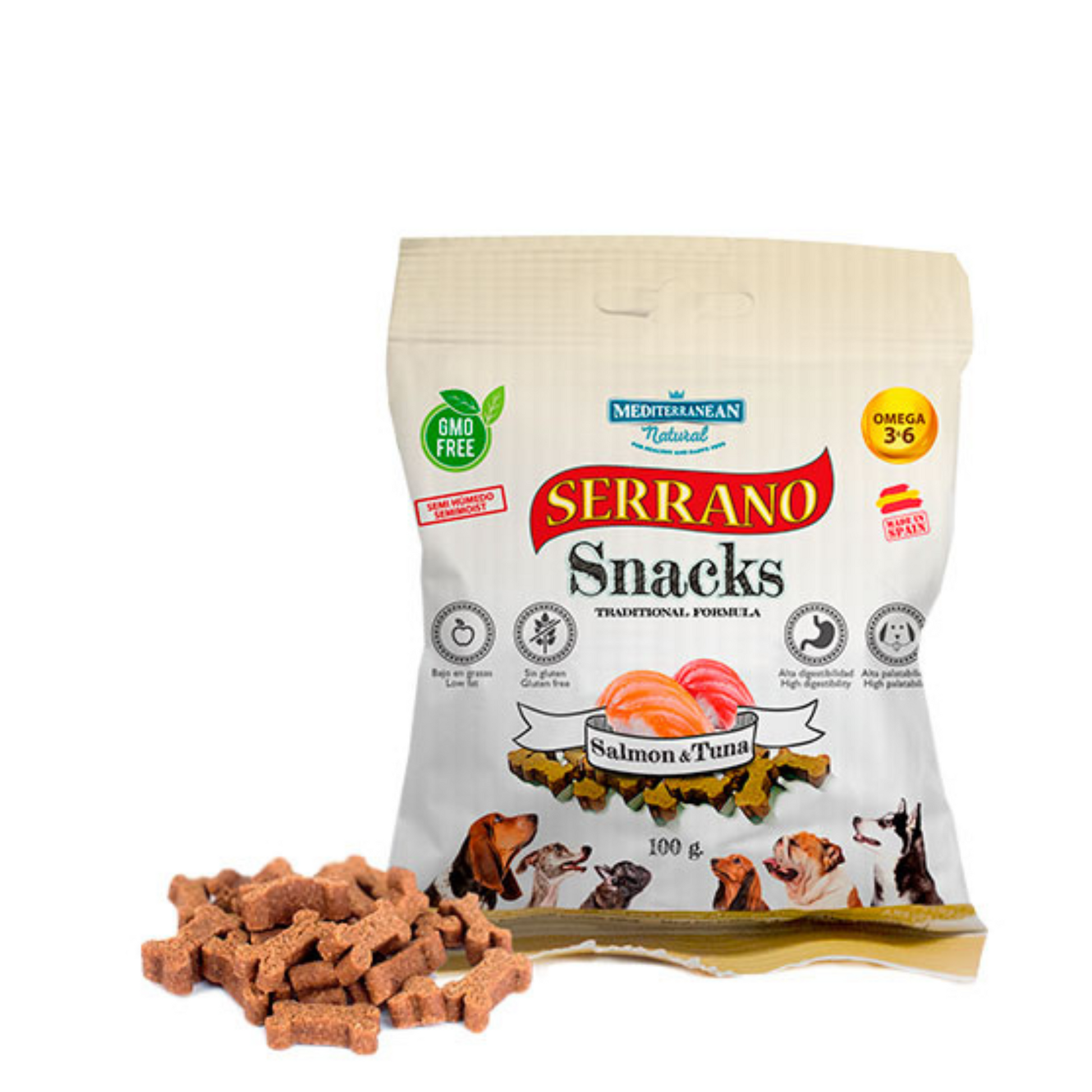 Os Snacks Serrano de Salmão e Atum aportam Ómega 3 e 6. São o snack perfeito para recompensar o bom comportamento do seu animal de estimação. Todos os sacos são herméticos para preservar os nutrientes em boas condições.