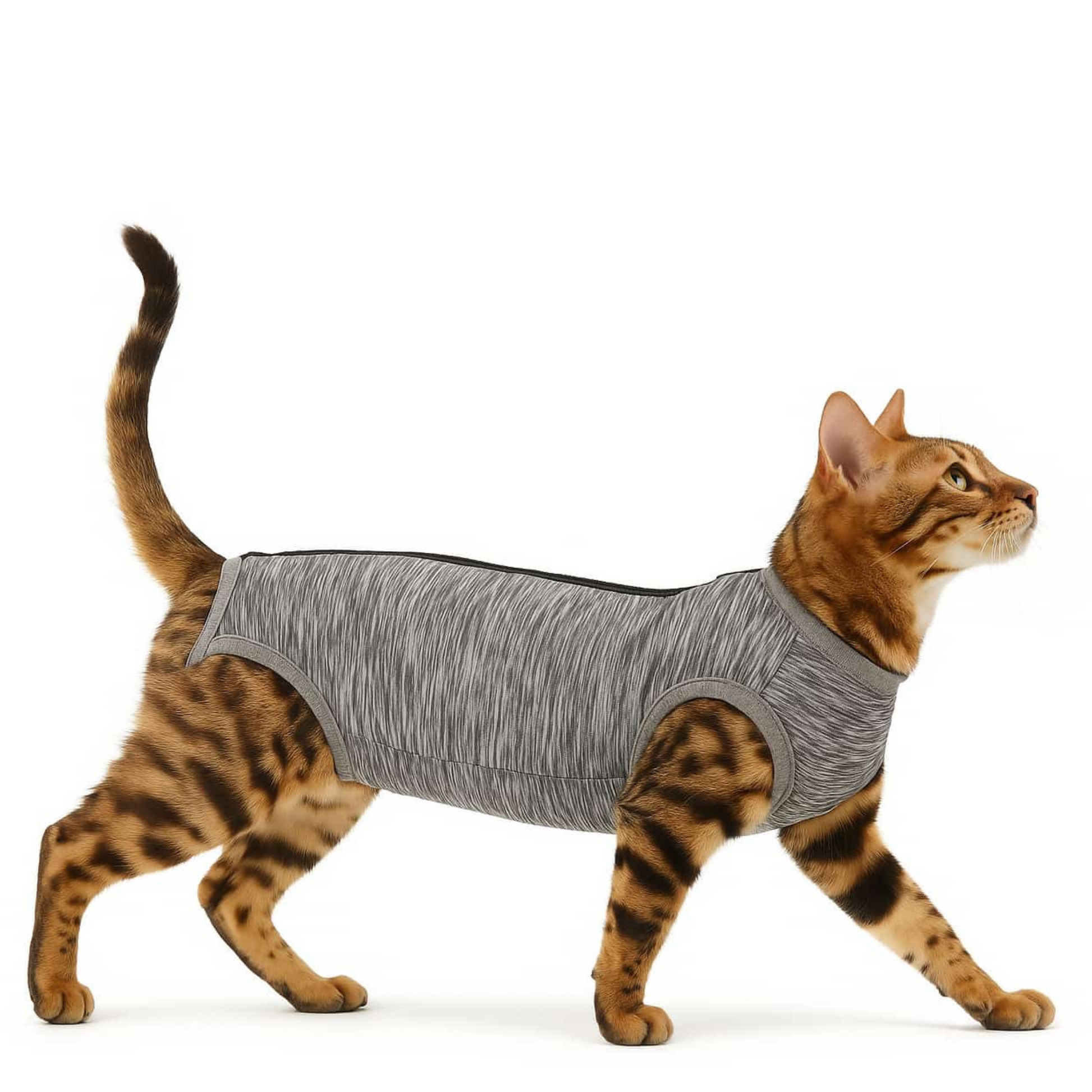 Body de proteção pós-cirurgia para gatos machos ou fêmeas para uma recuperação tranquila e confortável.