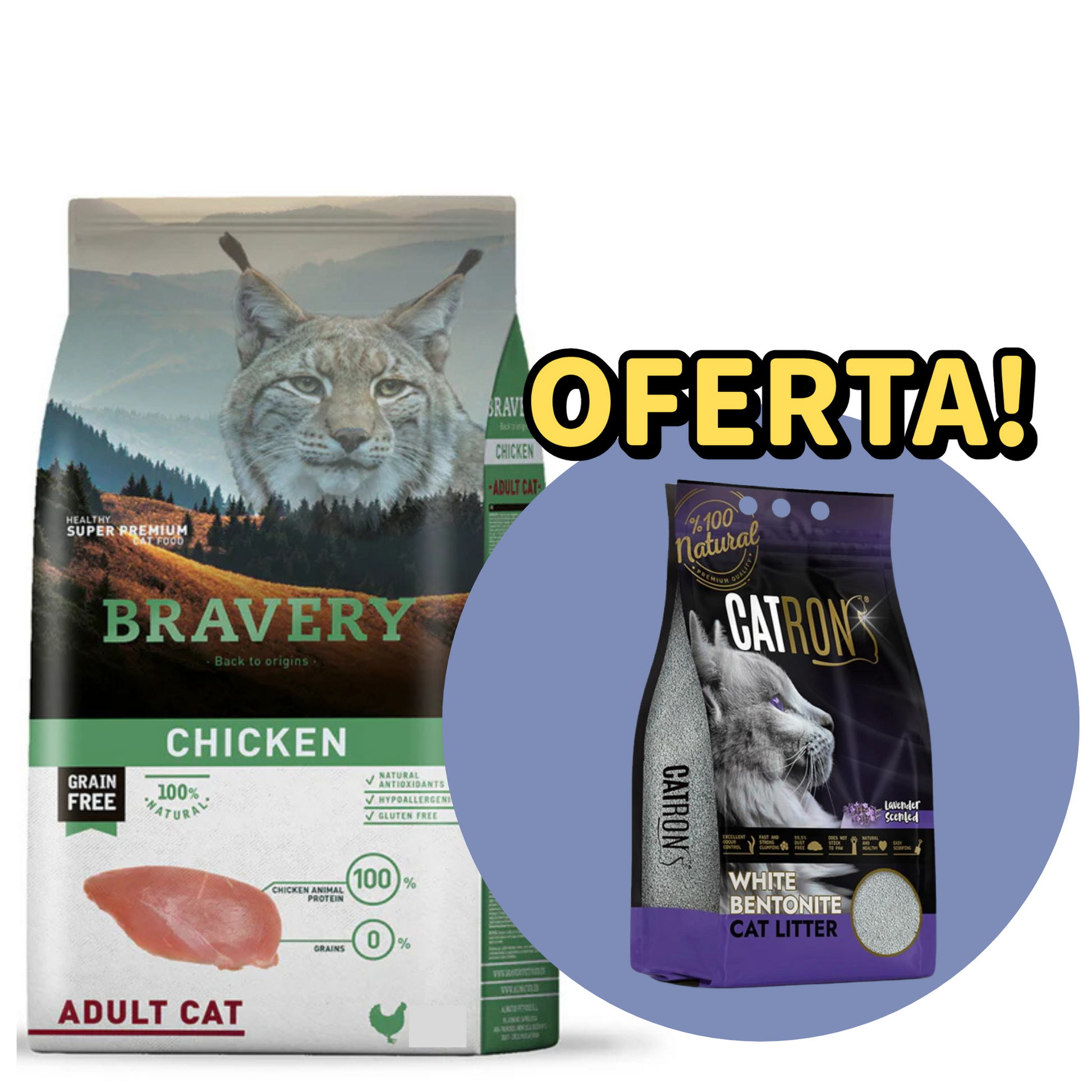 PROMOÇÃO: Oferta de areia aglomerante Catron 5L no valor de 6,90€ na compra de um saco de Bravery Gato 7kg