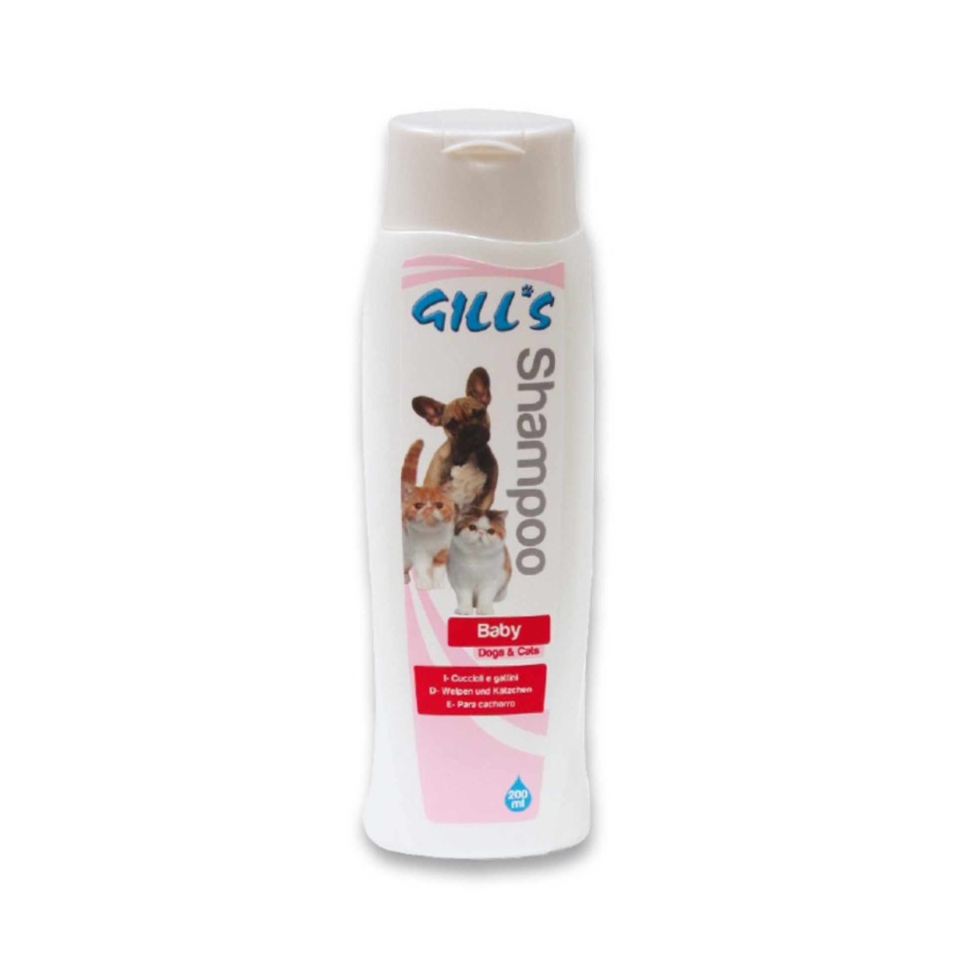 O champô Gill's Baby é específico para cachorros e gatinhos.