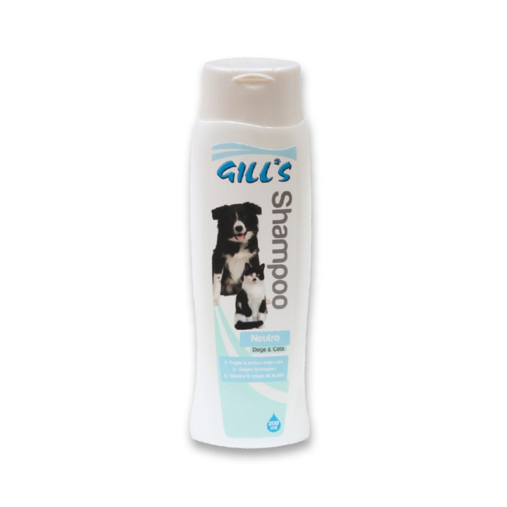 O chmapô Gill's Neutro remove com eficácia a caspa dos pelos de cães e gatos, deixando a pele limpa. Os resíduos de caspa podem ser facilmente removidos com um secador de cabelo.