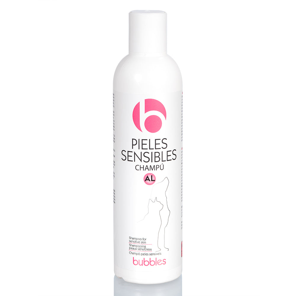 O champô Bubbles para animais com pele sensível é perfeito para o cuidado e higiene da pele do seu animal de estimação. Graças a um complexo natural de frações de Tulsi, Cardo Mariano e Algas Verdes, protegemos e restauramos a função de barreira da pele do animal. Indicado para cães e gatos.