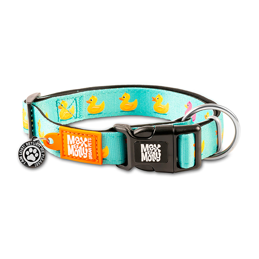 Conforto, segurança e padrões únicos e originais são caraterísticas que definem as coleiras da Max & Molly. Feitas em materiais ultra leves e especialmente confortáveis de usar pelo animal, estas coleiras têm um lado em poliéster resistente com padrões exclusivos impressos e um outro lado macio em neoprene hipoalergénico e de rápida secagem.