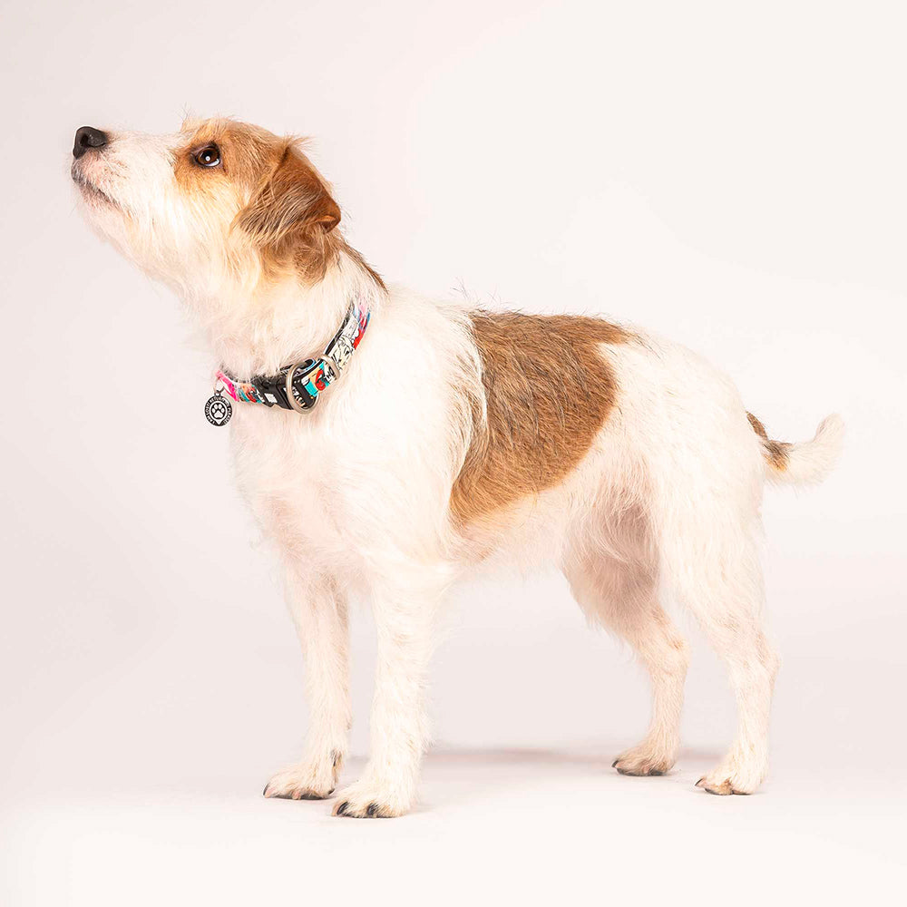 Conforto, segurança e padrões únicos e originais são caraterísticas que definem as coleiras da Max & Molly. Feitas em materiais ultra leves e especialmente confortáveis de usar pelo animal, estas coleiras têm um lado em poliéster resistente com padrões exclusivos impressos e um outro lado macio em neoprene hipoalergénico e de rápida secagem.