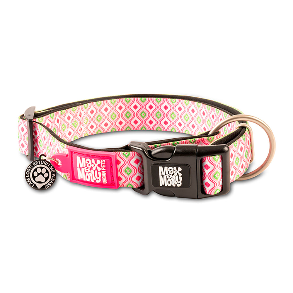 Conforto, segurança e padrões únicos e originais são caraterísticas que definem as coleiras da Max & Molly. Feitas em materiais ultra leves e especialmente confortáveis de usar pelo animal, estas coleiras têm um lado em poliéster resistente com padrões exclusivos impressos e um outro lado macio em neoprene hipoalergénico e de rápida secagem.