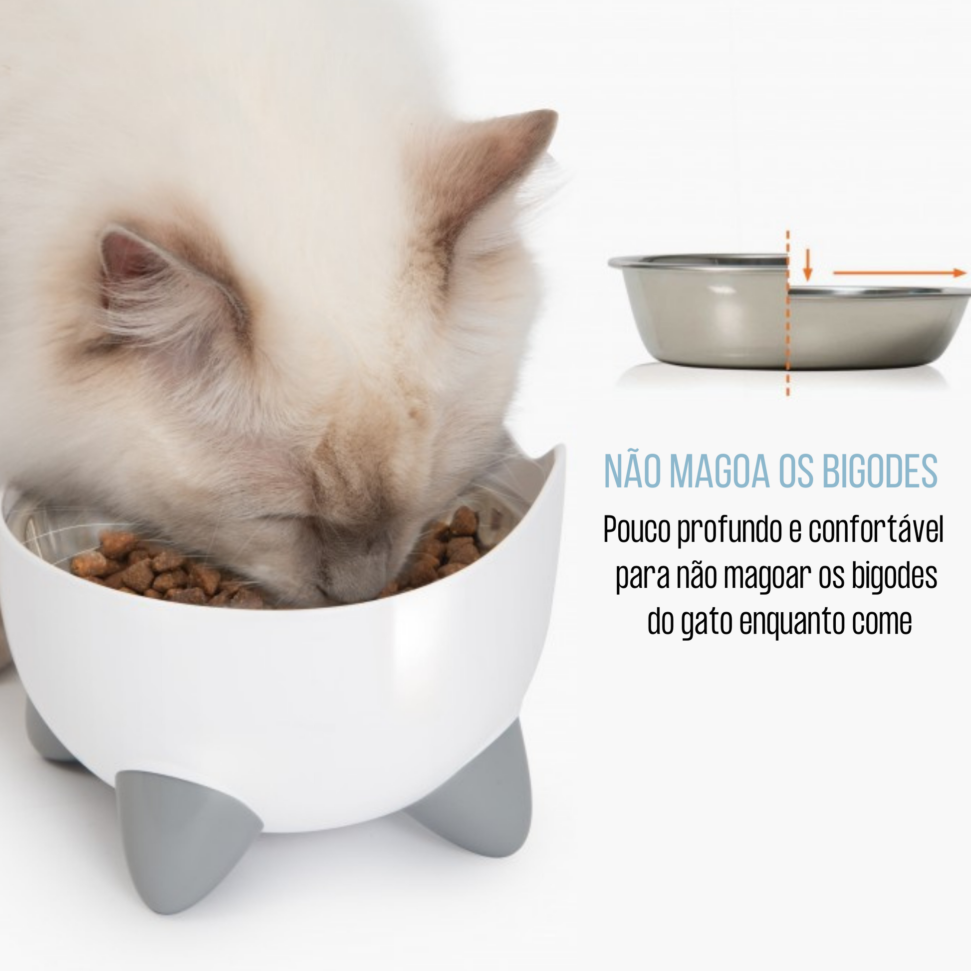É ergonómico e confortável para os bigodes dos gatos. O desconforto que uma tigela funda para comer e/ou beber cria nos gatos é bem conhecido. Por isso, a Catit projetou este Comedouro Elevado para que os gatos possam comer confortavelmente sem sofrer nenhum stress nos bigodes ou desconforto que os faça comer mais rápido e ter pior digestão.