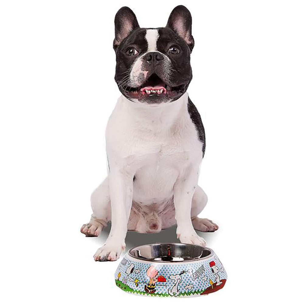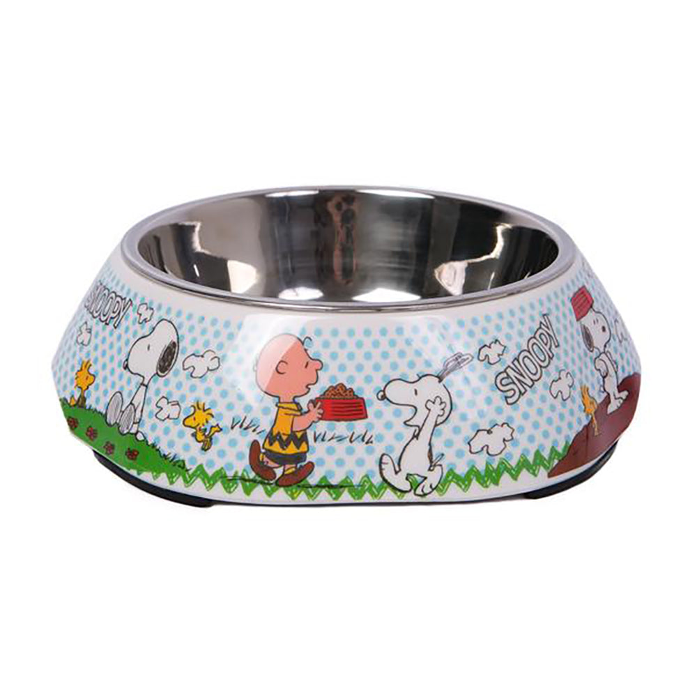 Taça dupla, em melamina e inox, oficial Snoopy de qualidade superior.