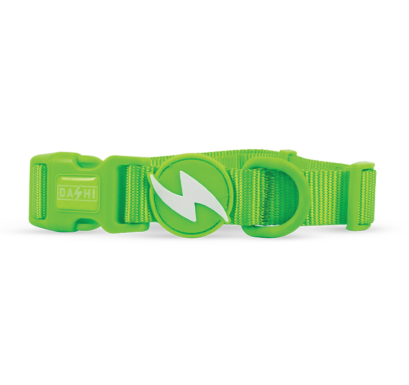 As coleiras Dashi® Neon são feitas de nylon resistente, totalmente ajustáveis, com um fecho de 4 pontos para a segurança do teu cão.