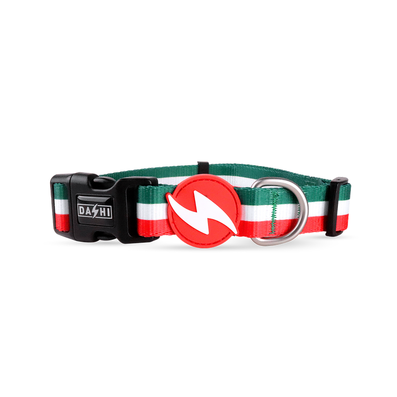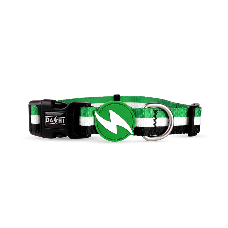 As coleiras Dashi® Stripes são feitas de poliéster resistente, totalmente ajustáveis, com um fecho de 4 pontos para a segurança do teu cão.