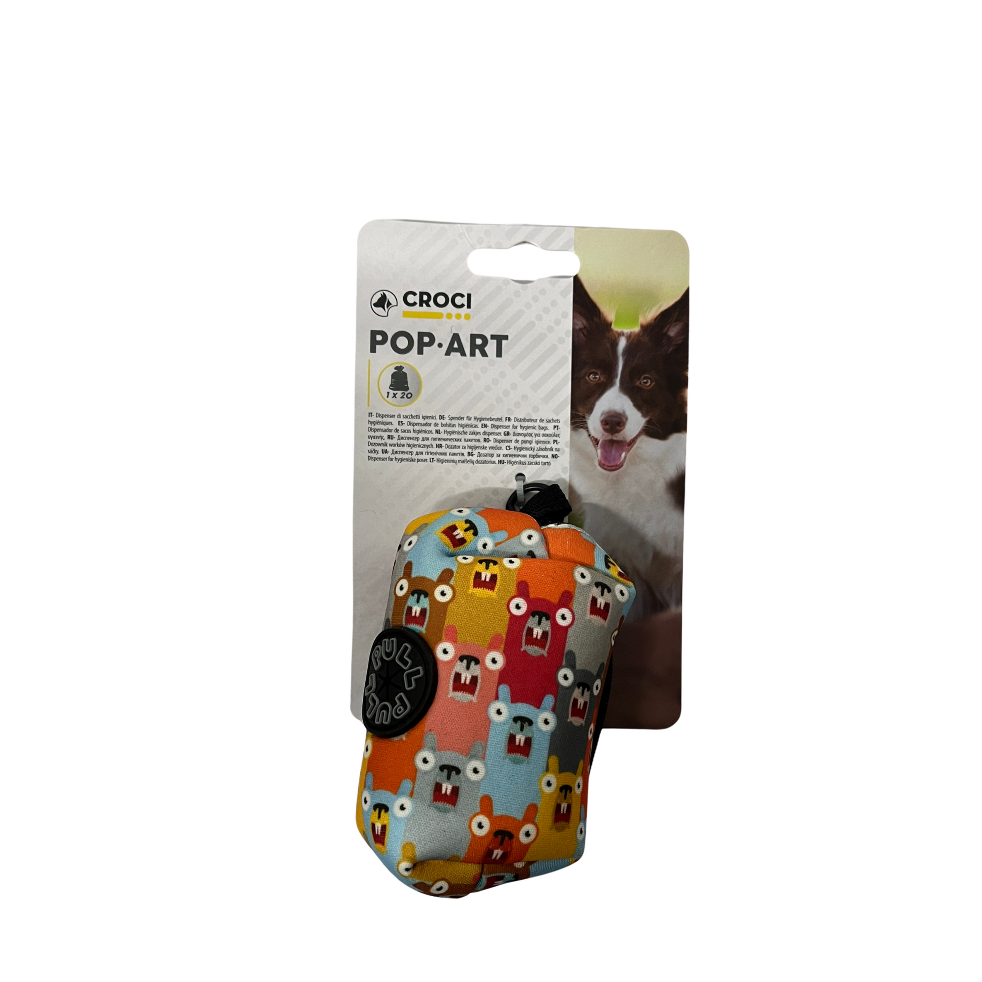 O porta-sacos "Pop Art" para cães é extremamente macio e está disponível em quatro padrões modernos e engraçados.