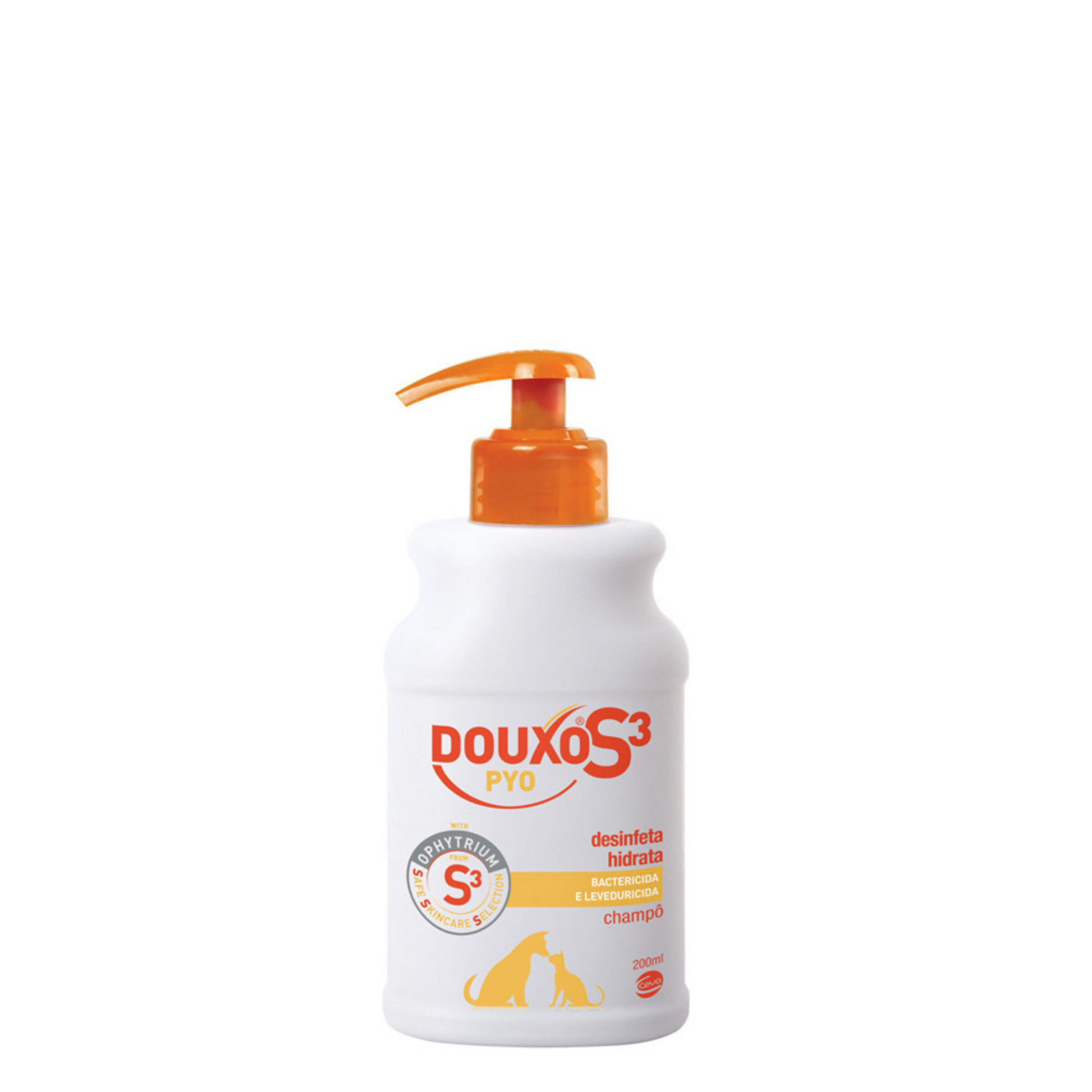 - Champô hidratante que fortalece a barreira cutânea: a aplicação repetida de produtos desinfetantes pode secar a pele. O Champô DOUXO ® S3 PYO foi desenvolvido para desinfetar eficientemente ao mesmo tempo que hidrata a pele. Também reestrutura a barreira danificada que protege o seu animal de companhia das agressões externas.
