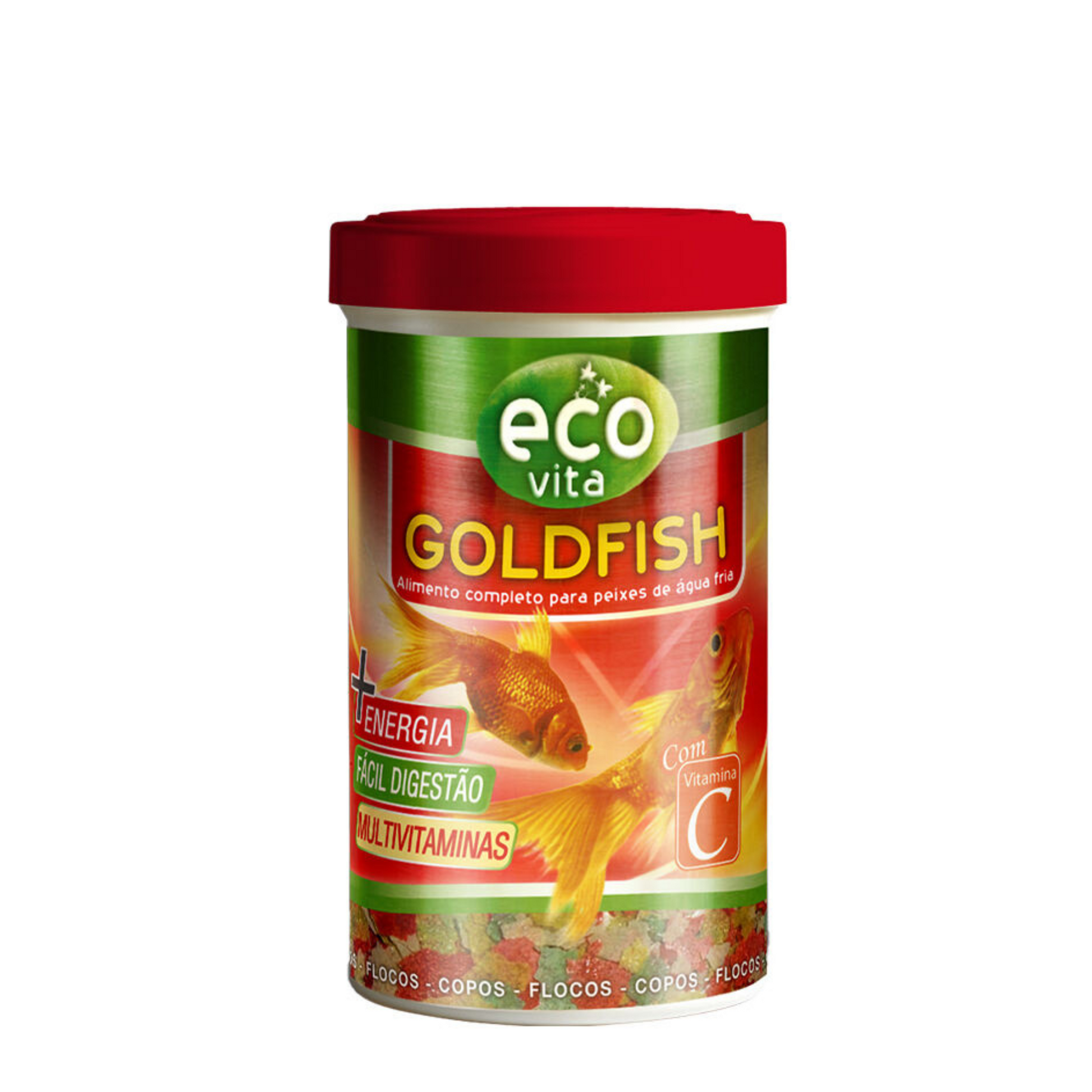 Flocos para peixes vermelhos. Alimento completo para peixes de água fria.