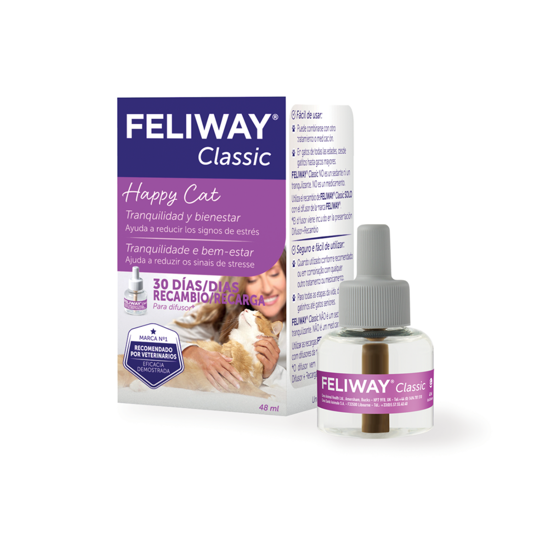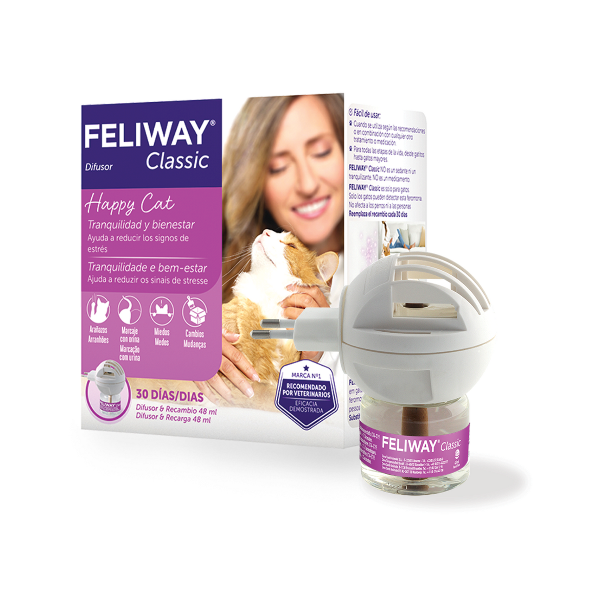 FELIWAY CLASSIC Difusor é uma excelente solução para que o seu gato se sinta confortável em casa e para evitar sinais como marcação com urina, arranhões nos móveis e esconder-se.