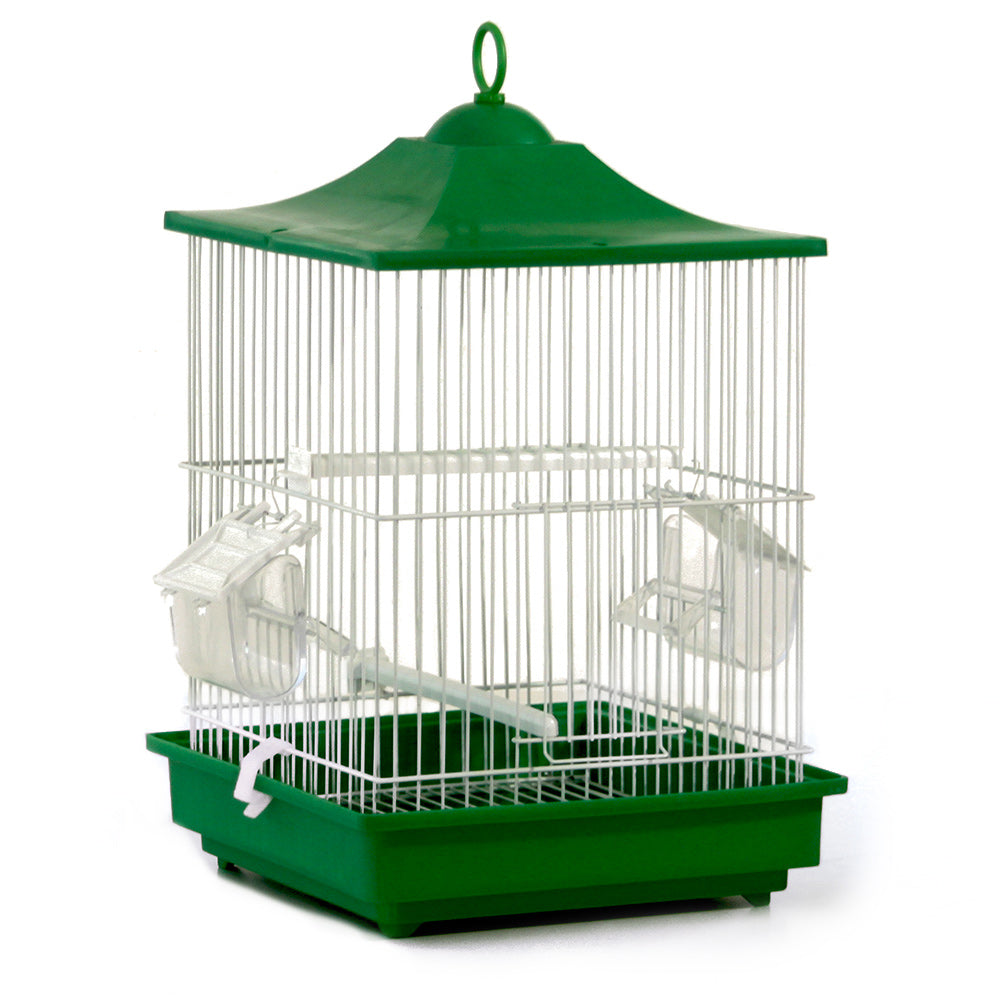 Gaiola com gaveta, 2 poleiros e 2 comedouros.