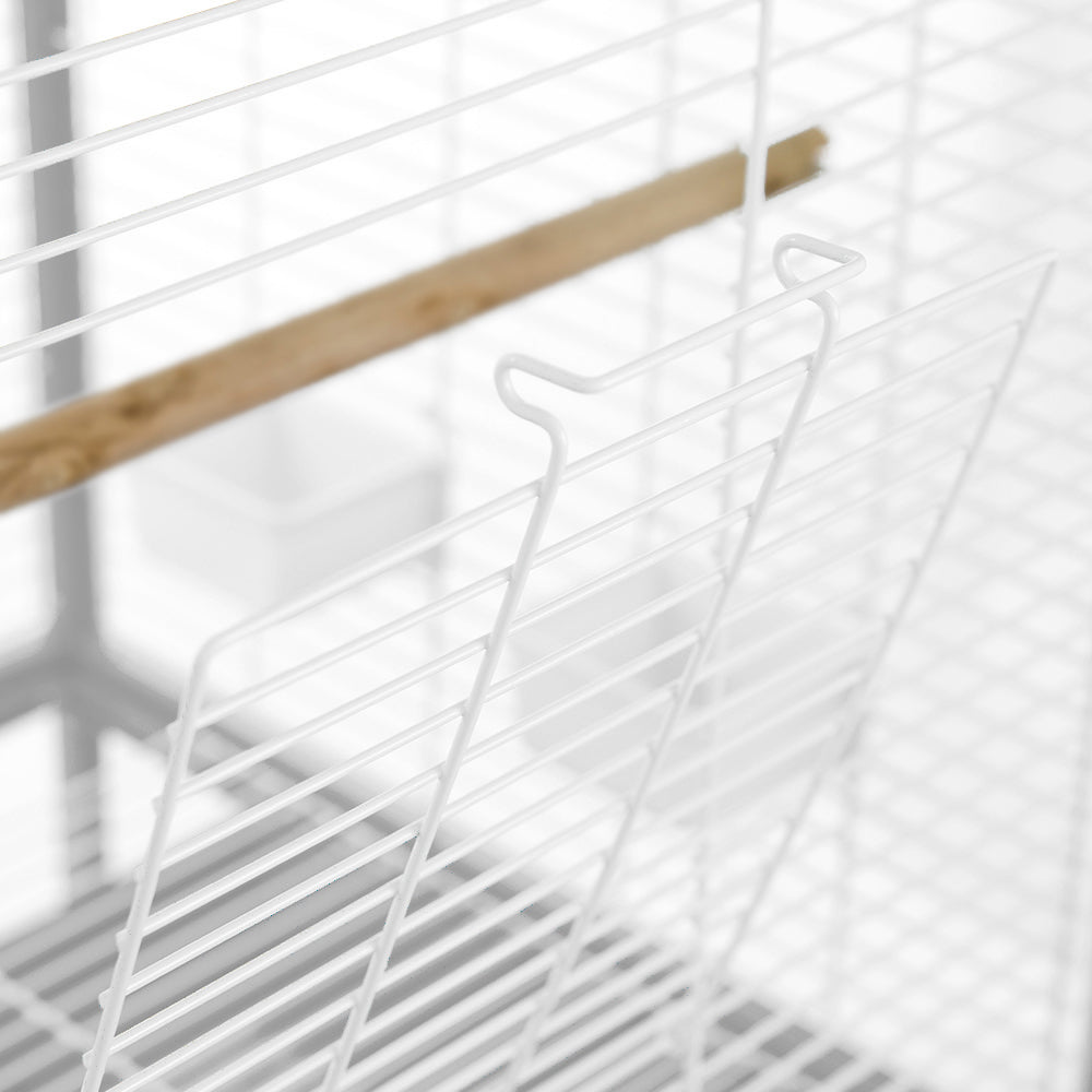 Gaiola espaçosa e acolhedora para papagaios.