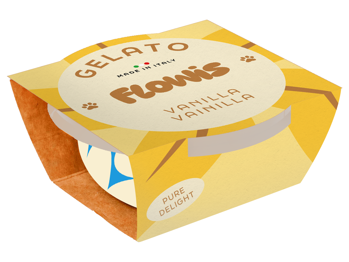 Um snack gelado, produzido em Itália, pensado para que os cães possam saborear o verdadeiro prazer de um gelado.