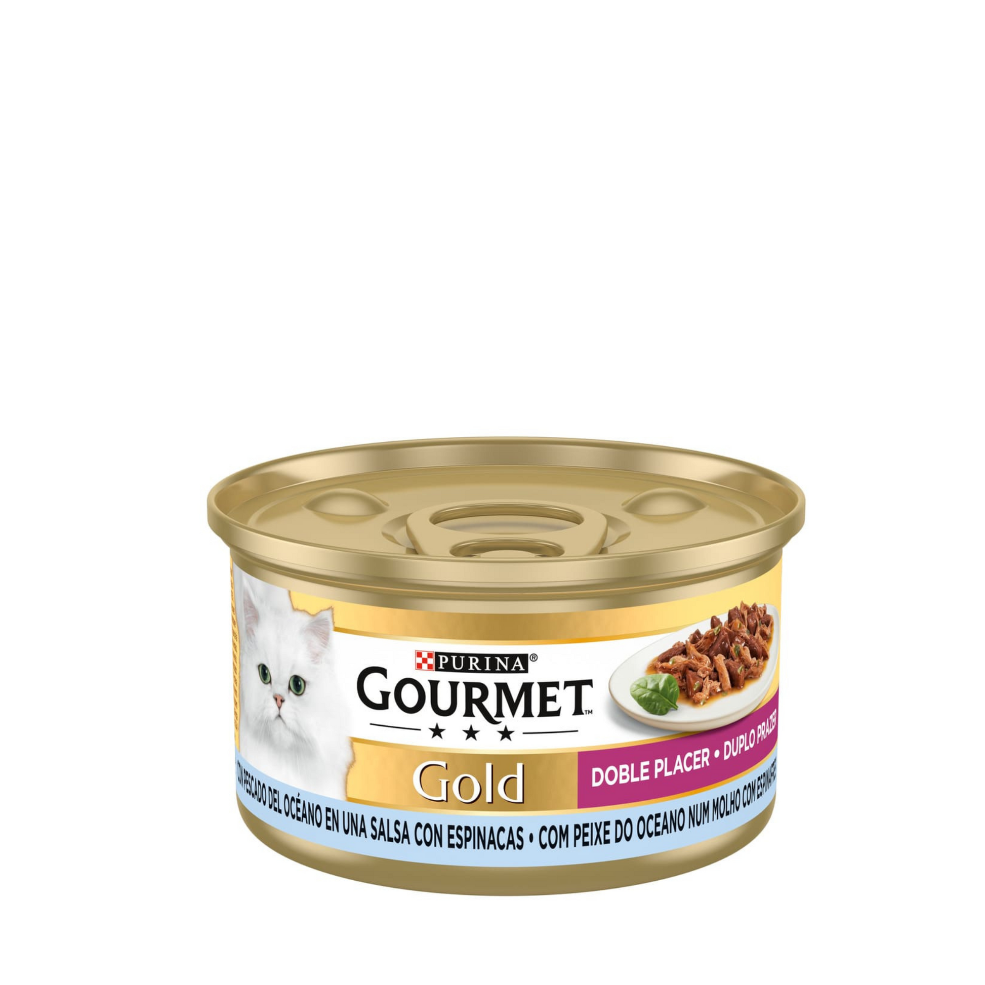 Não quer que as refeições do seu gato se tornem monótonas, por isso procura sempre diferentes alternativas que ele irá adorar. É por isso que GOURMET Gold criou Duplo Prazer, deliciosas receitas para mimar o seu sofisticado paladar com uma experiência de sabor diferente todos os dias. Tenros pedaços combinados com finas lâminas cuidadosamente cozinhados: a combinação ideal de duas texturas diferentes numa só refeição que oferece ao seu gato o prazer de uma mistura subtil de texturas e sabores. Duplo Prazer de GOURMET Gold, uma dupla delícia para o seu gato! Todas as receitas de GOURMET Gold são elaboradas com ingredientes de elevada qualidade e sem adição de corantes, sem adição de aromatizantes artificiais e sem adição de conservantes artificiais.