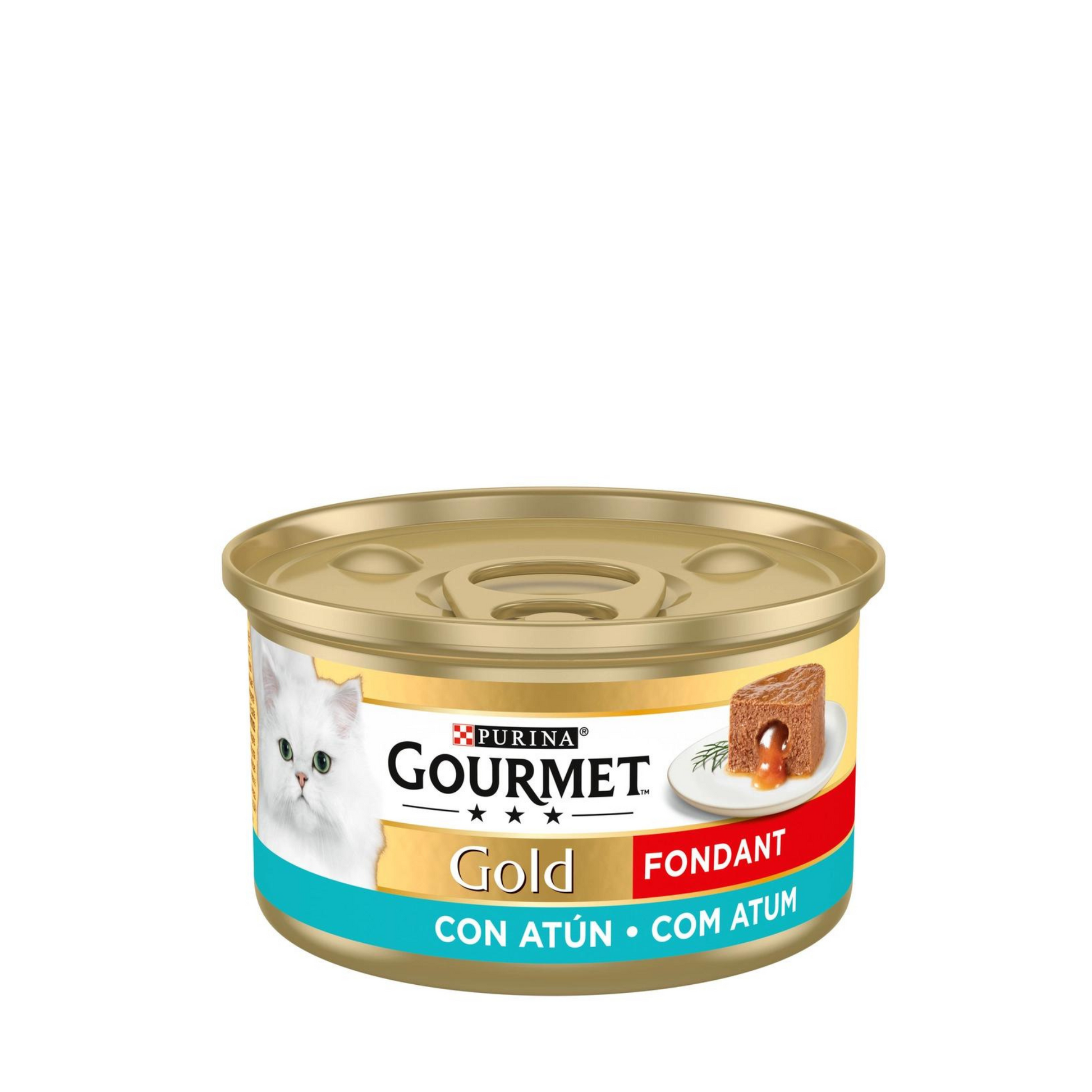 Para tornar a refeição dos gatos ainda mais especial, a Gourmet criou a Gourmet Gold Fondant: uma mousse suave e irresistível com vaca, frango, salmão e outros requintados sabores, com um supreendente recheio derretido no interior. O seu gato começará por experimentar uma suave e delicada mousse e depois irá descobrir um inesperado recheio, com um molho suculento que o irá deliciar.
