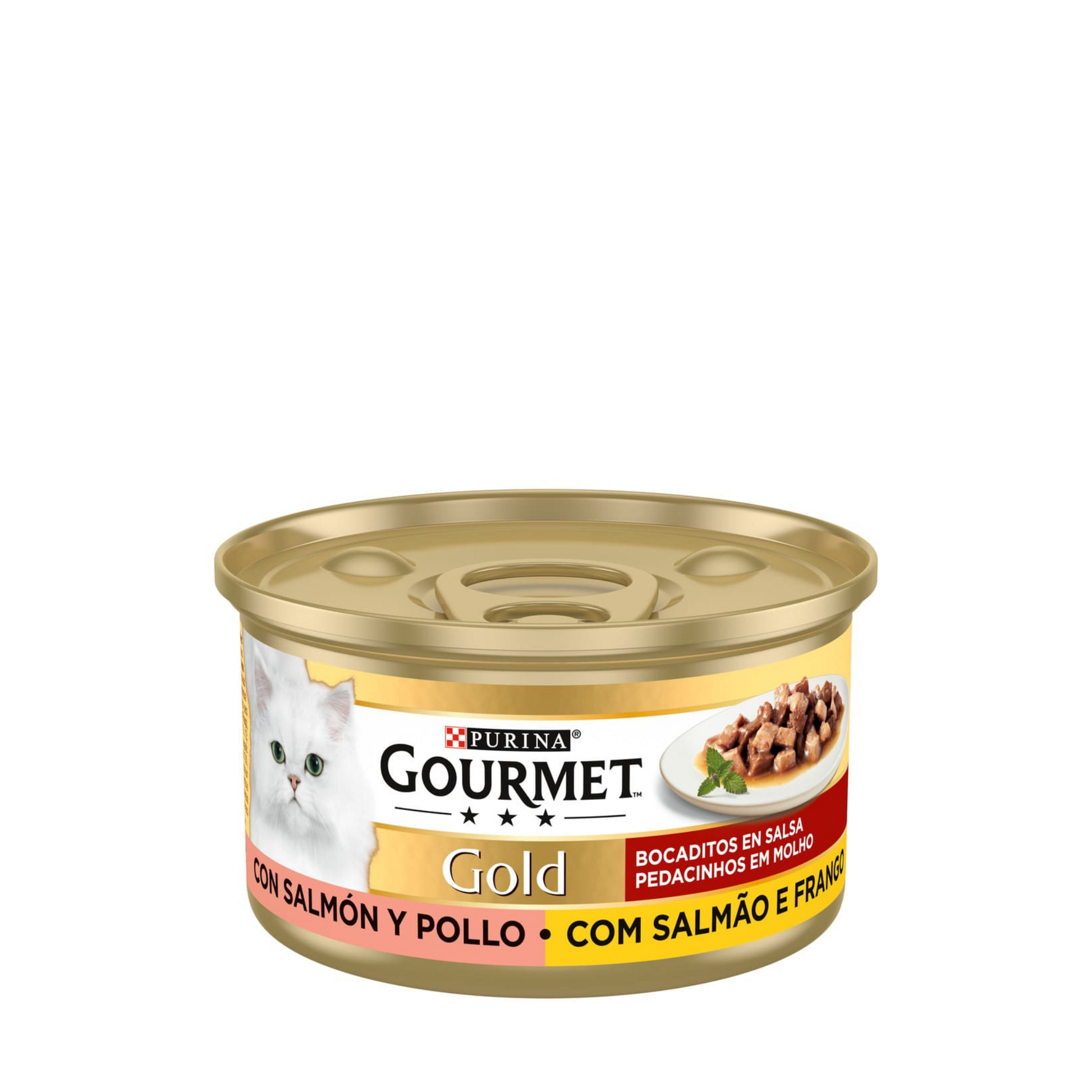 Gourmet Gold Pedacinhos em Molho são tenros pedaços com vaca, frango, salmão e outros requintados sabores, suavemente cozinhados na perfeição e imersos num apetitoso molho para oferecer ao seu gato o prazer de um sabor rico e fabuloso. Todas as receitas de Gourmet Gold são elaboradas com ingredientes de elevada qualidade e sem adição de corantes, sem adição de aromatizantes artificiais e sem adição de conservantes artificiais. artificiais.