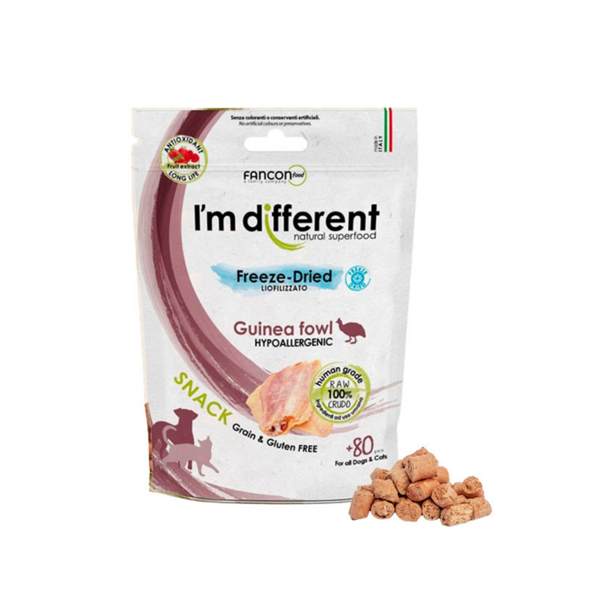 Além disso, as guloseimas liofilizadas para galinha-d'angola são ideais como uma recompensa saudável ou simplesmente para mimar o seu cão. Também é perfeito para animais de estimação com alergias ou sensibilidades alimentares e também para comedores agitados.