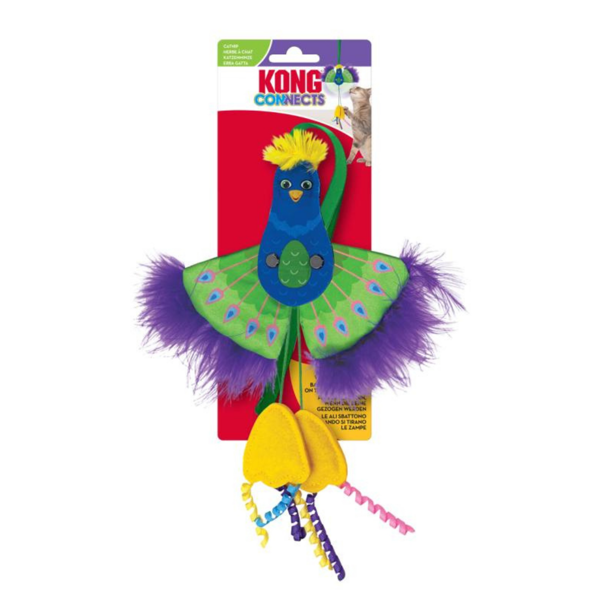 Ao puxar as pernas penduradas com um fio, as asas mexem e criar um movimento típico de de pavão.