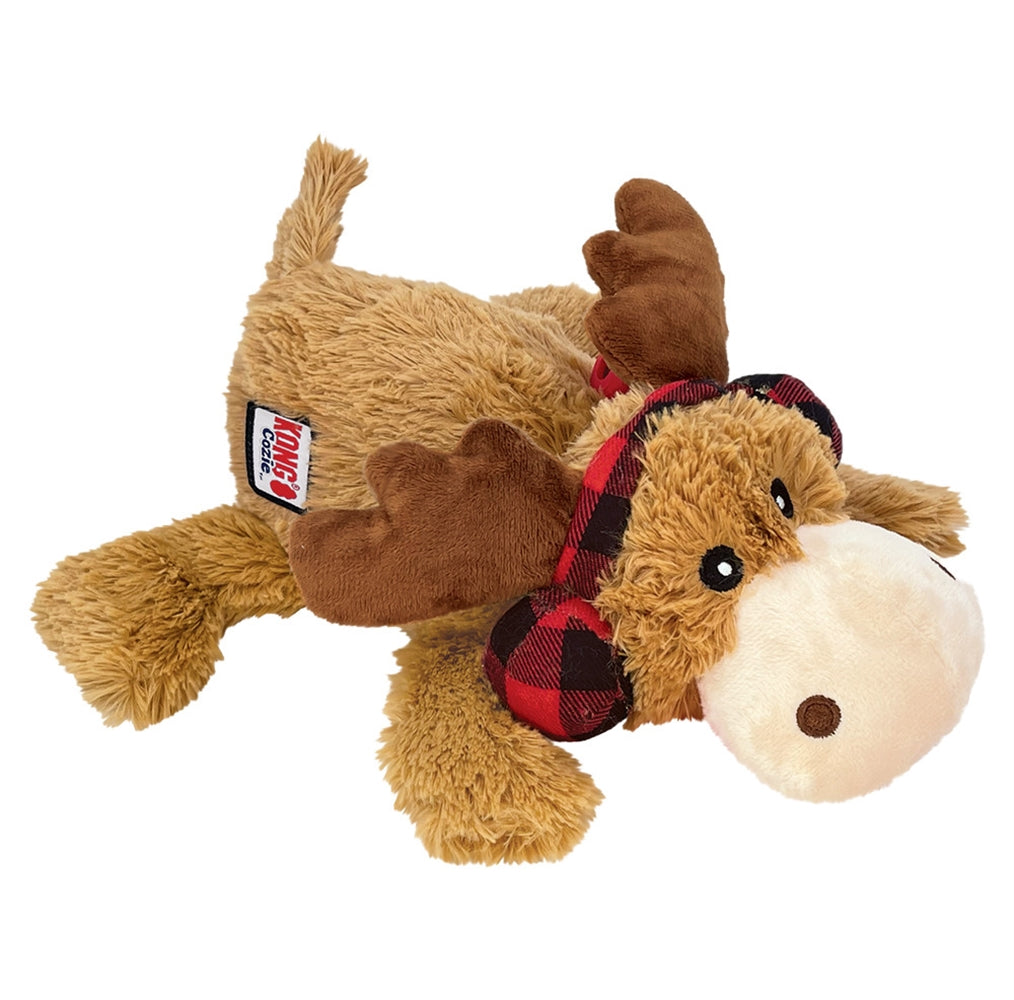 Um peluche para cães, em forma de rena de natal, revestido com tecido super suave e confortável e com som no interior!