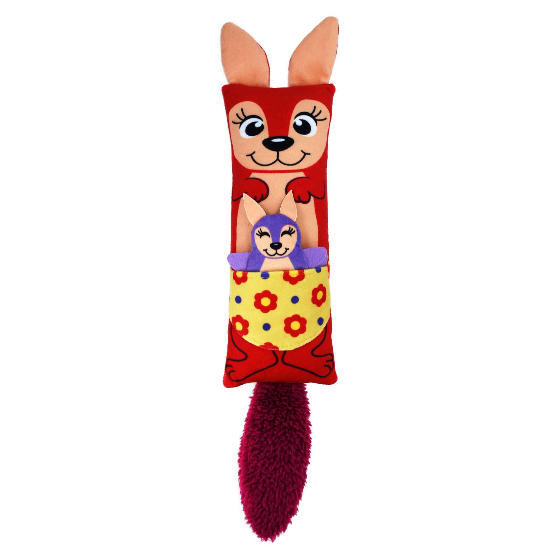 O brinquedo 2 em 1 KONG Kanga Kickeroo desperta os instintos naturais dos gatinhos e proporciona diversão em dobro. O corpo longo é idealmente modelado para brincadeiras de luta e patadas traseiras. O bebê canguru interno, leve e removível, é preenchido com erva de gato e contém sons de guizo que recompensam a brincadeira de rebatidas. A bolsa ruidosa atrai o interesse do gato continuamente, enquanto a KONG North American Premium Catnip estende o enriquecimento.