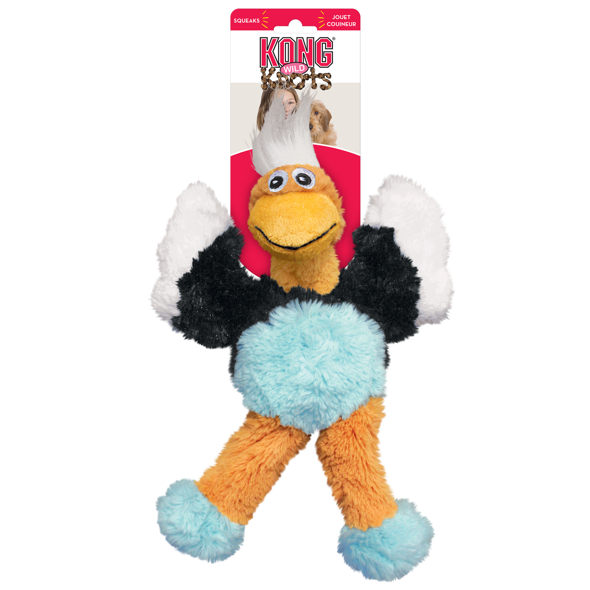 KONG Wild Knots são macios e aconchegantes do lado de fora e duráveis e fortes. O Wild Knots Eagle é certeza de ser um sucesso com os cães e os donos dos animais de estimação! A corda com nós interna satisfaz os instintos naturais dos cães e o corpo de pelúcia reforçado proporciona durabilidade extra. KONG Wild Knots tem uma quantidade mínima de enchimento para bagunça mínima. Como se isso não bastasse, eles rangem! Eles não são apenas de pelúcia regular.