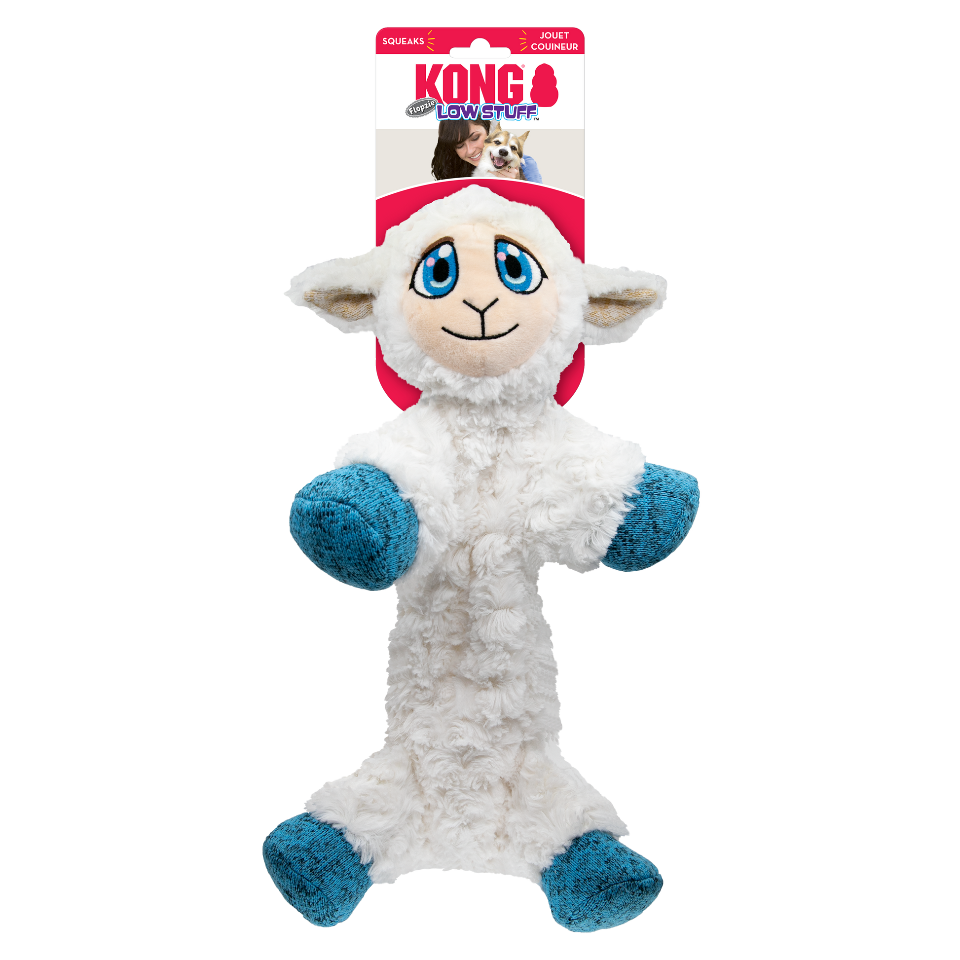 O KONG Low Stuff Flopzie Lamb tem um corpo longo e uma base pesada que convida a agitar e sacudir enquanto recompensa os instintos naturais de um cão. Dentro, há menos enchimento para menos sujeira e múltiplos apitos que apresentam uma variedade de sons que mantêm os cães envolvidos. Enquanto seus corpos macios e pêlo aconchegante tornam esses amigos adoráveis ??ótimos para aconchegos, eles também apresentam forro adicional para garantir que o tempo de brincadeira dure um pouco mais.