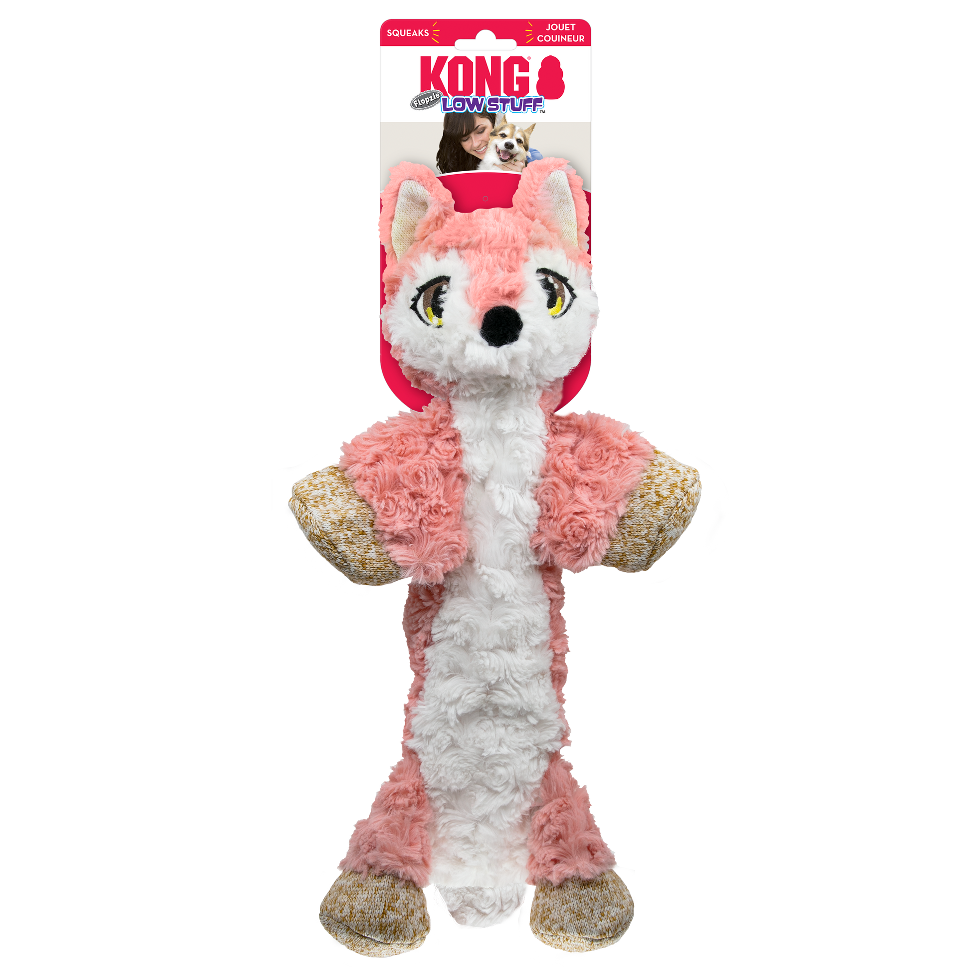 O KONG Low Stuff Flopzie Fox tem um corpo longo e uma base pesada que convida a agitar e sacudir enquanto recompensa os instintos naturais de um cão. Dentro, há menos enchimento para menos sujeira, e múltiplos apitos que apresentam uma variedade de sons que mantêm os cães envolvidos. Enquanto seus corpos macios e pêlo aconchegante tornam esses amigos adoráveis ??ótimos para aconchegos, eles também apresentam forro adicional para garantir que o tempo de brincadeira dure um pouco mais.