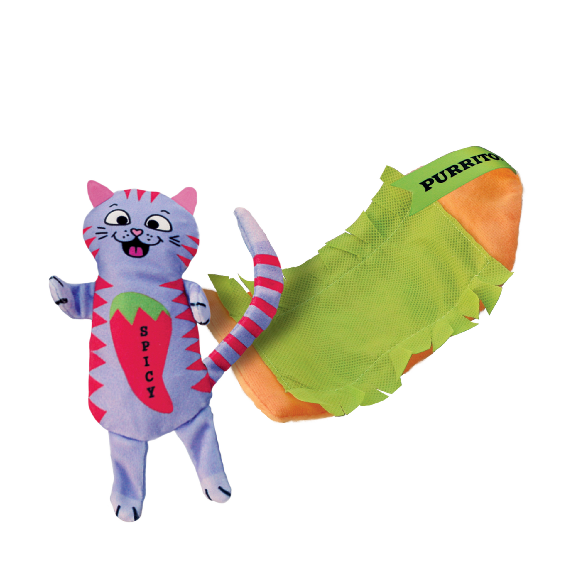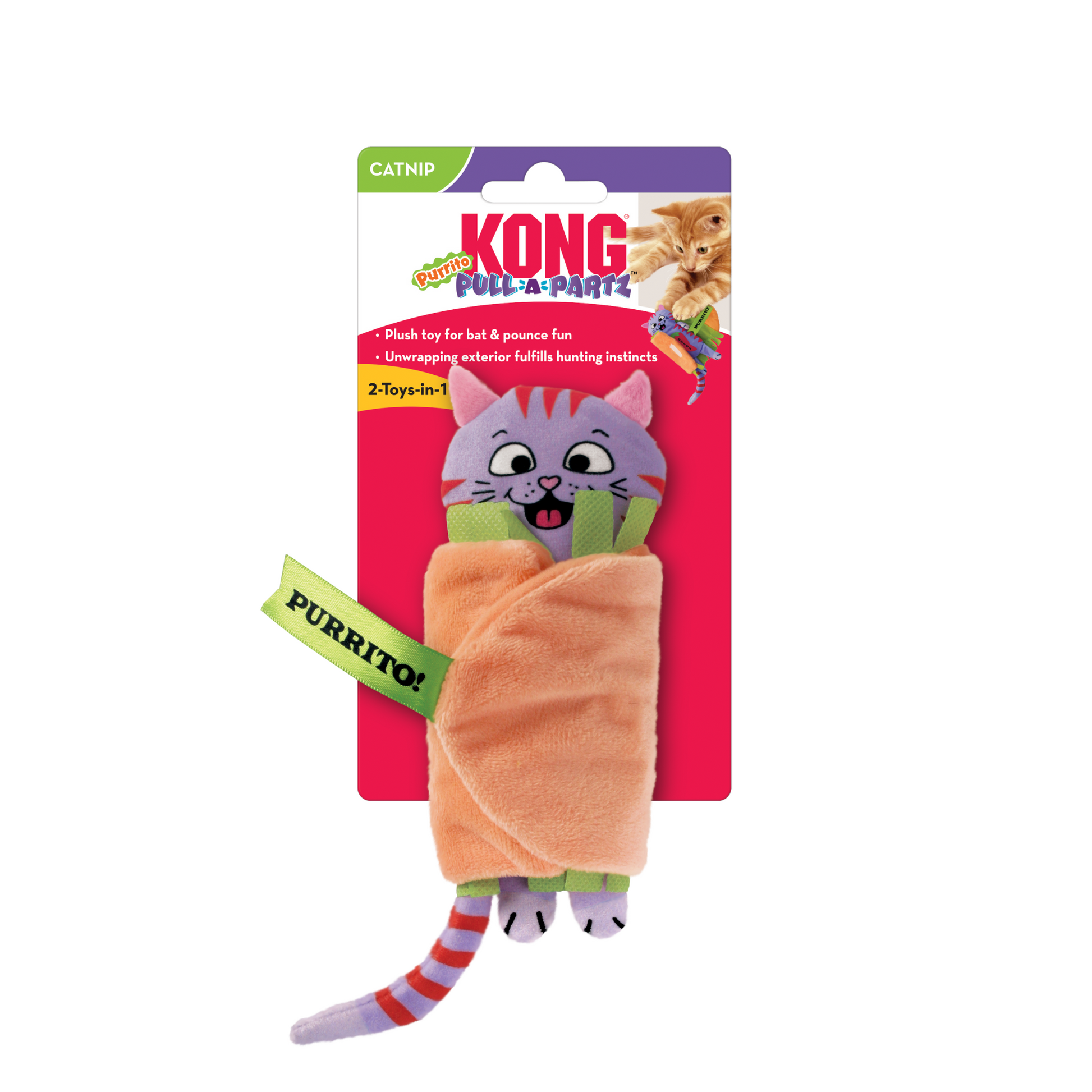 O KONG Pull-A-Partz Purrito oferece 2 brinquedos em 1, feitos para atrair e satisfazer os instintos naturais de caça dos gatos. Cheio de diversão, o brinquedo de peluche interior é ideal para a brincadeira de rebater e agarrar, enquanto o velcro externo e os sons de estalo internos despertam o interesse dos gatinhos. O Catnip KONG North American Premium nos dois brinquedos mantém-nos a brincar por mais tempo, promovendo uma festa para os sentidos do gato.