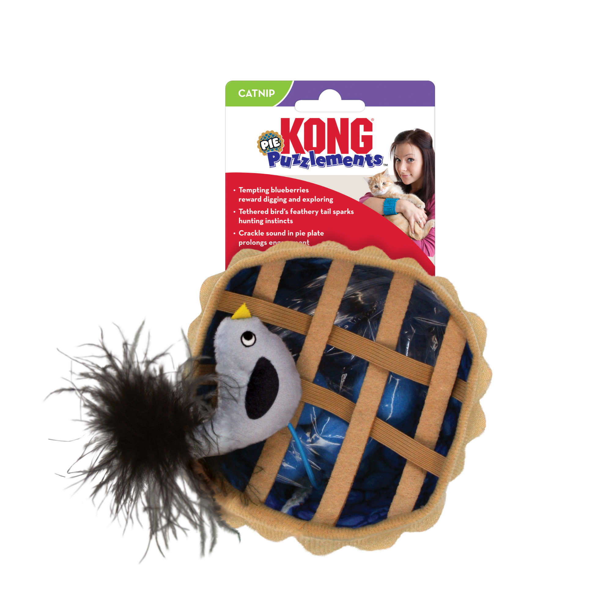 A KONG Puzzlements Pie (Torta) oferece um banquete de recompensas para gatos que adoram cavar e caçar. Recheada com KONG Premium North American Catnip, a cauda presa com penas de melro desperta os instintos de caça. Quatro mirtilos atraem os gatinhos para capturar e brincar; o som de estalo ajudar a manter a atenção.