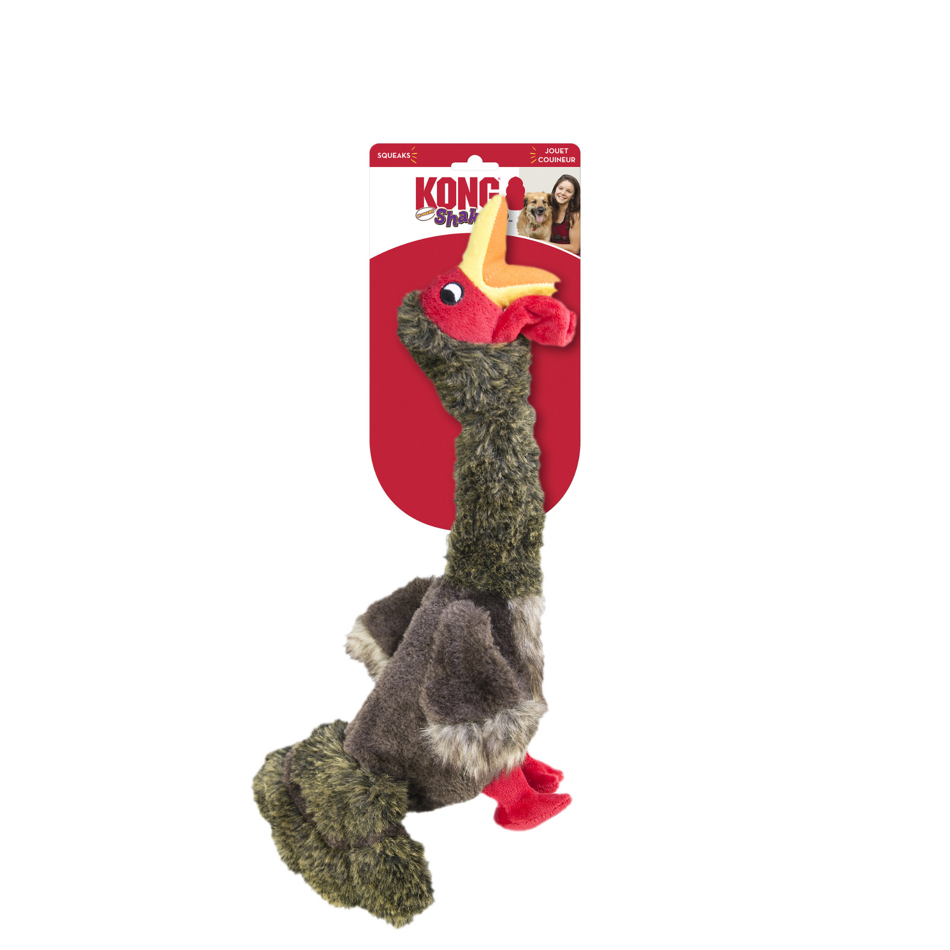 O KONG Shakers Honkers Turkey traz toda a diversão com um interior texturizado que satisfaz o instinto natural de um cão de mastigar, enquanto o pescoço longo incentiva o jogo de arremesso e puxão. O guincho grave dos KONG Shakers Honkers e o design de peluche reforçado mantêm o seu cão animado e prolongam o tempo de brincadeira.