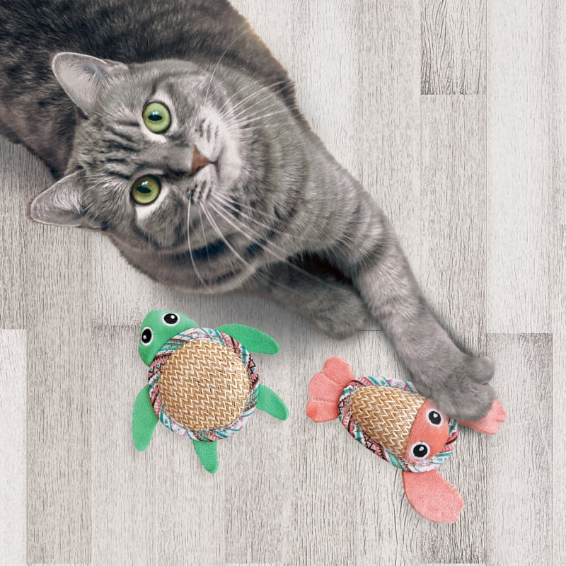 Os KONG Tropics Pals em corda com catnip convidam o seu gato a explorar o fundo do mar sem sair de casa. Estas encantadoras criaturas aquáticas foram criadas para estimular os instintos de caça do seu felino através de texturas variadas e detalhes sensoriais envolventes.