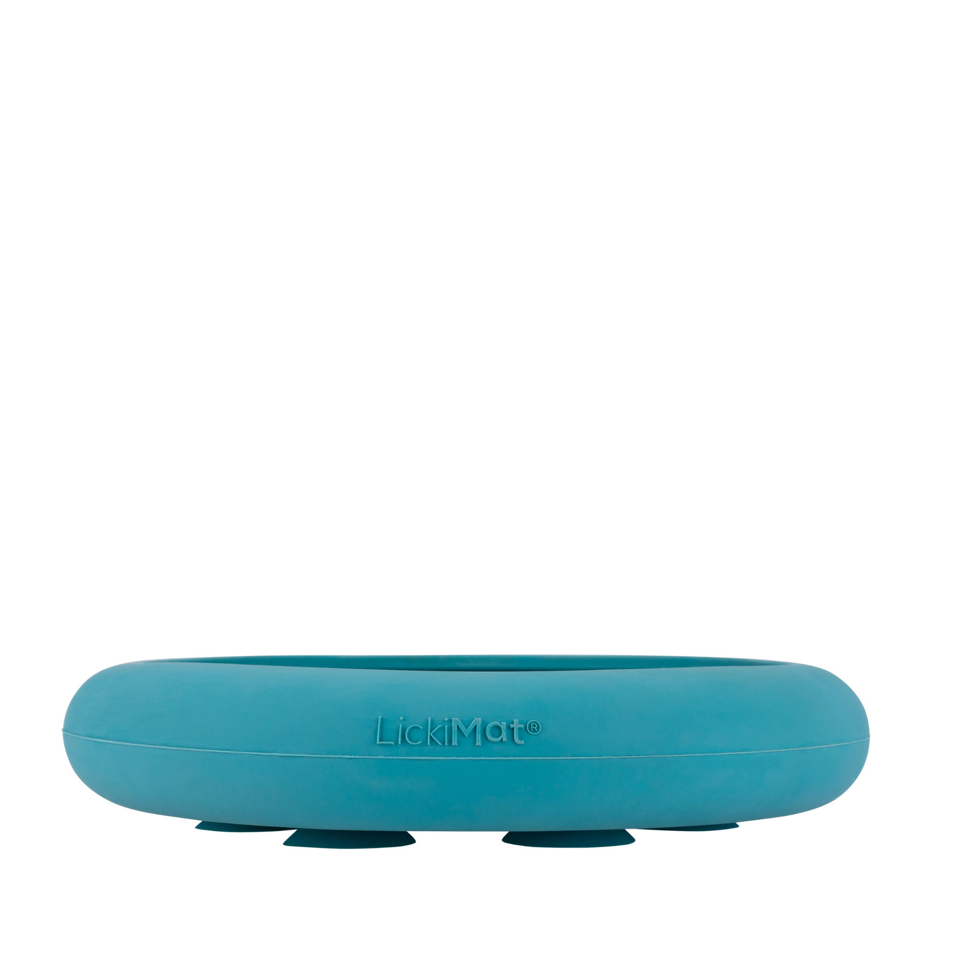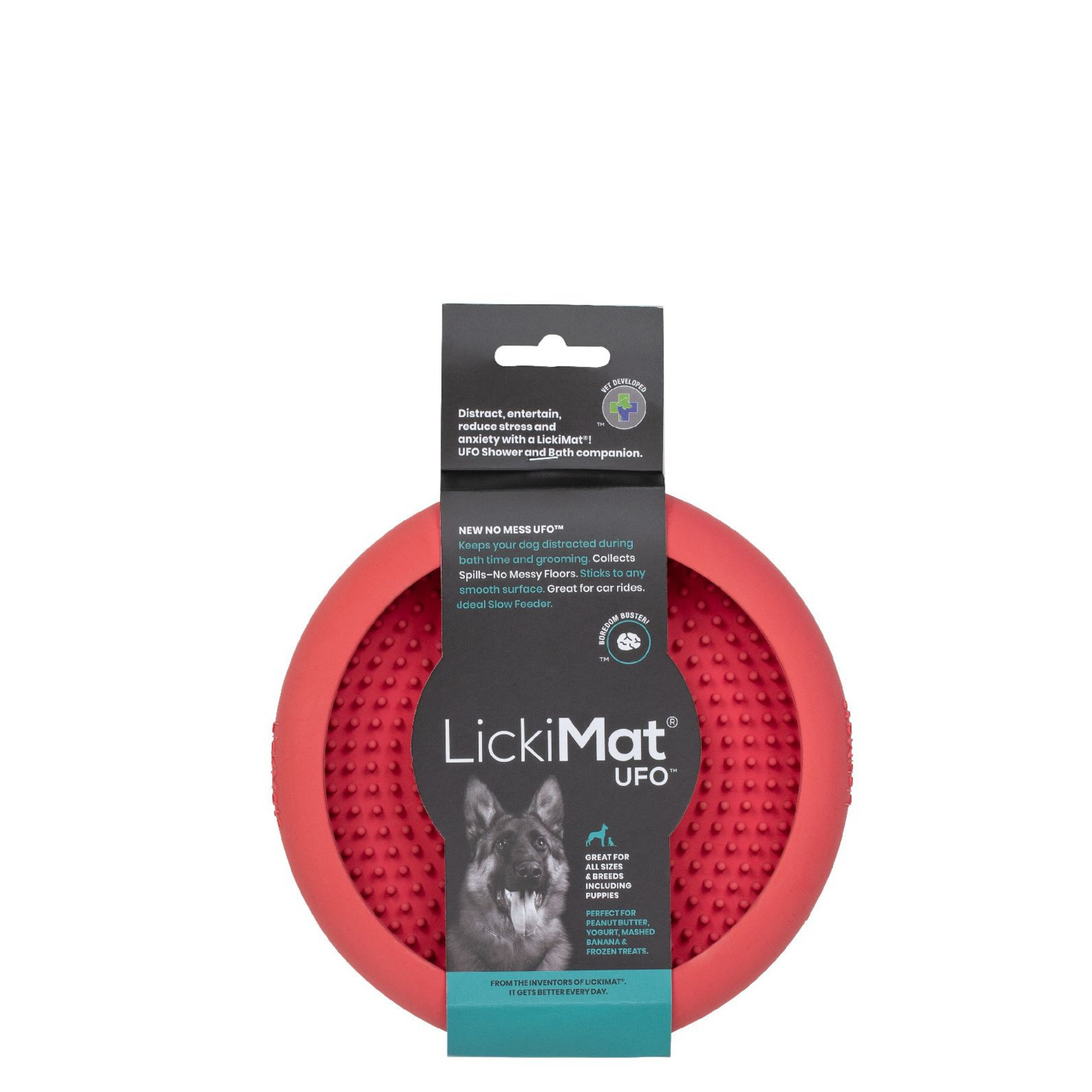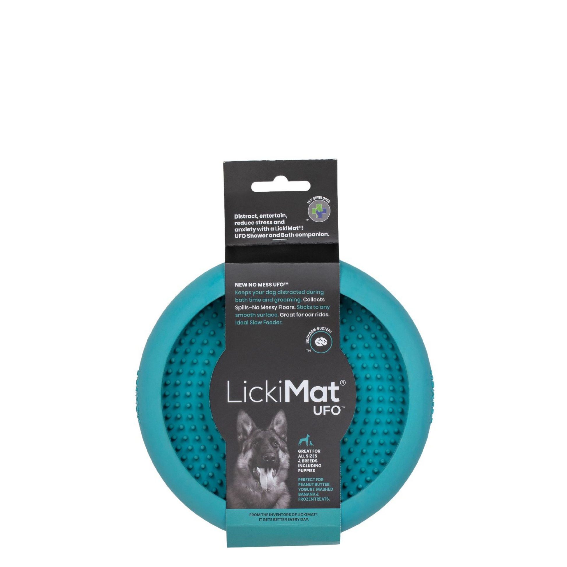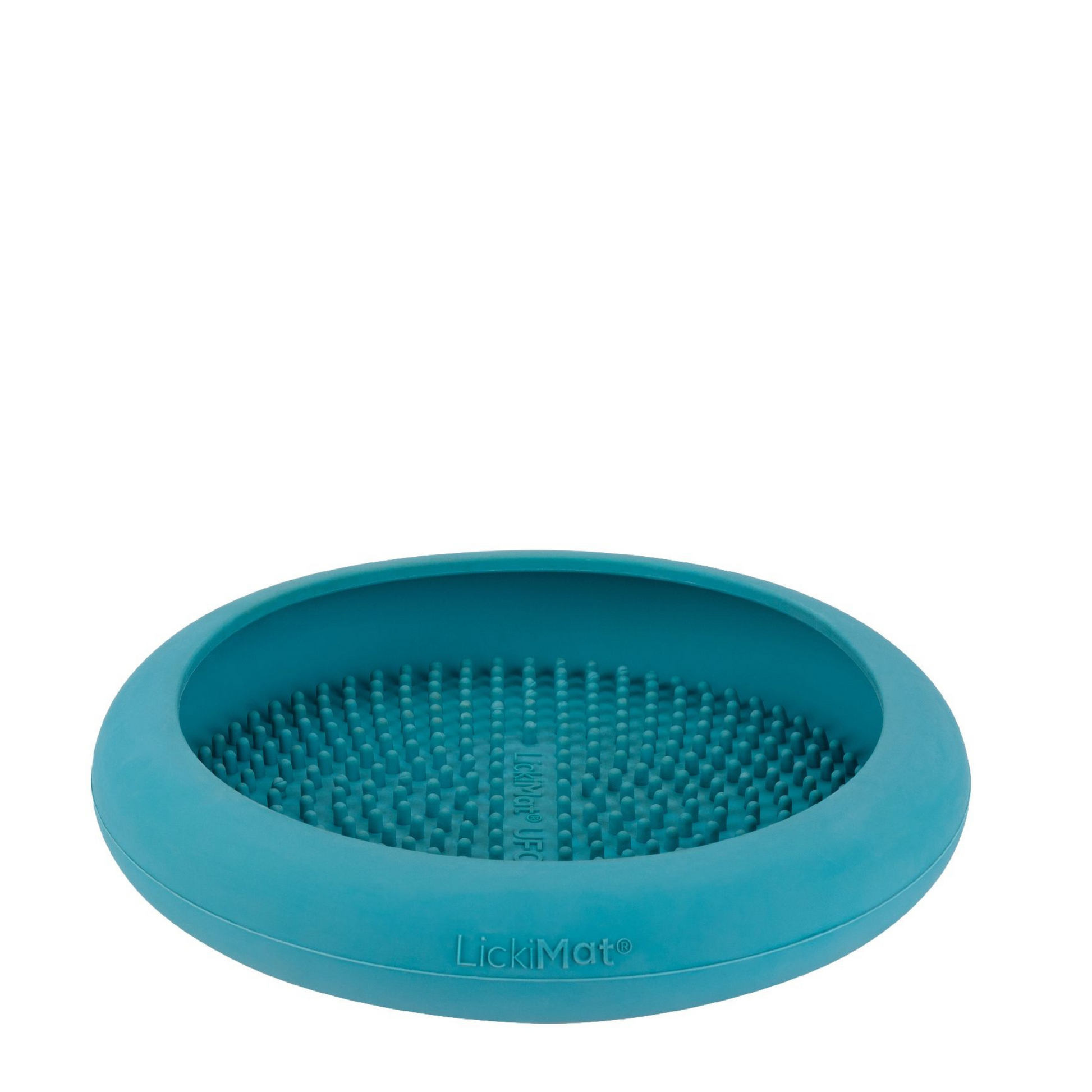 LickiMat UFO é ideal para animais de estimação durante a hora do banho ou outras atividades stressantes ou com doenças que os impedem de dobrar o pescoço ao comer.