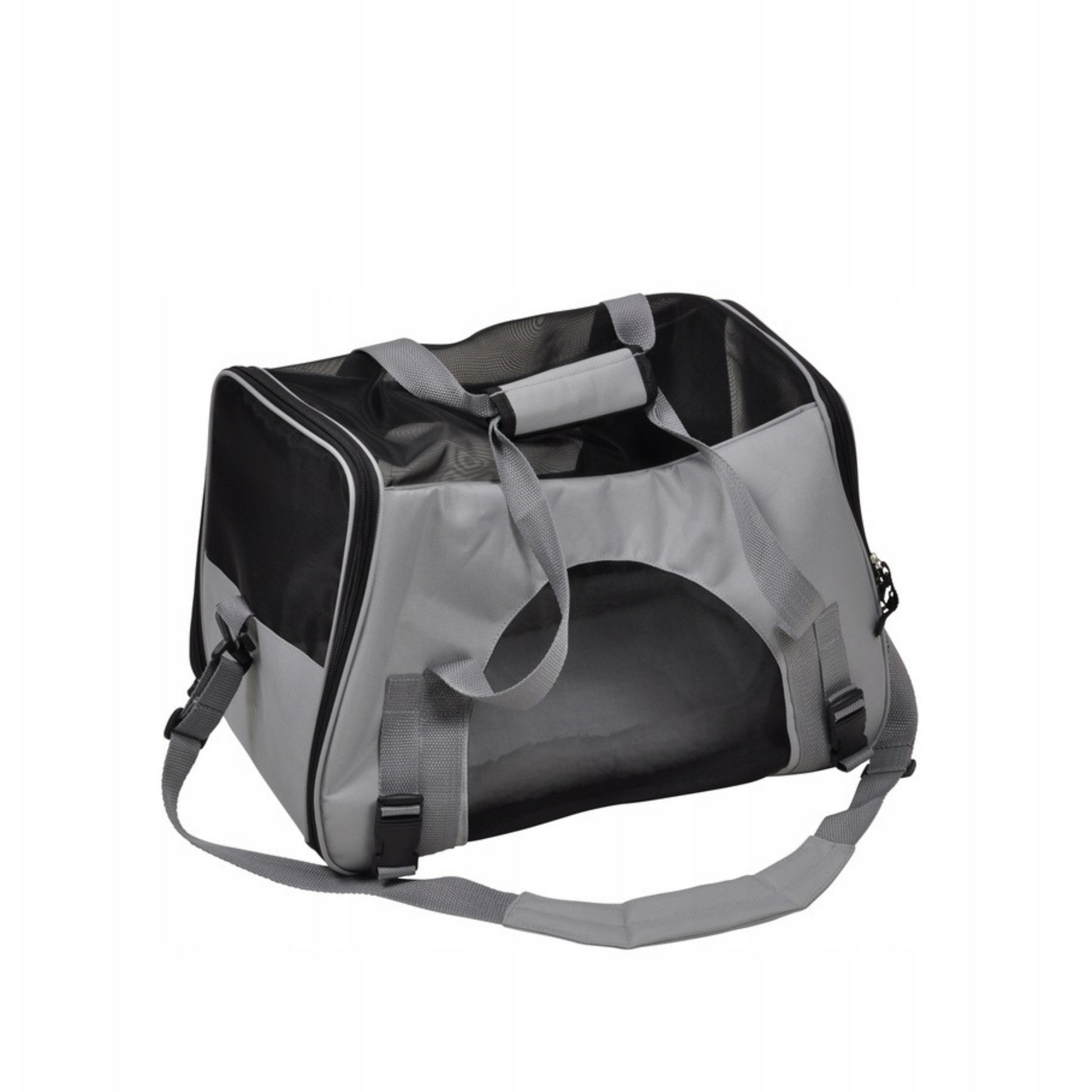 Transportadora para cães e gatos com dois bolos de armazenamento e forro interno removível.