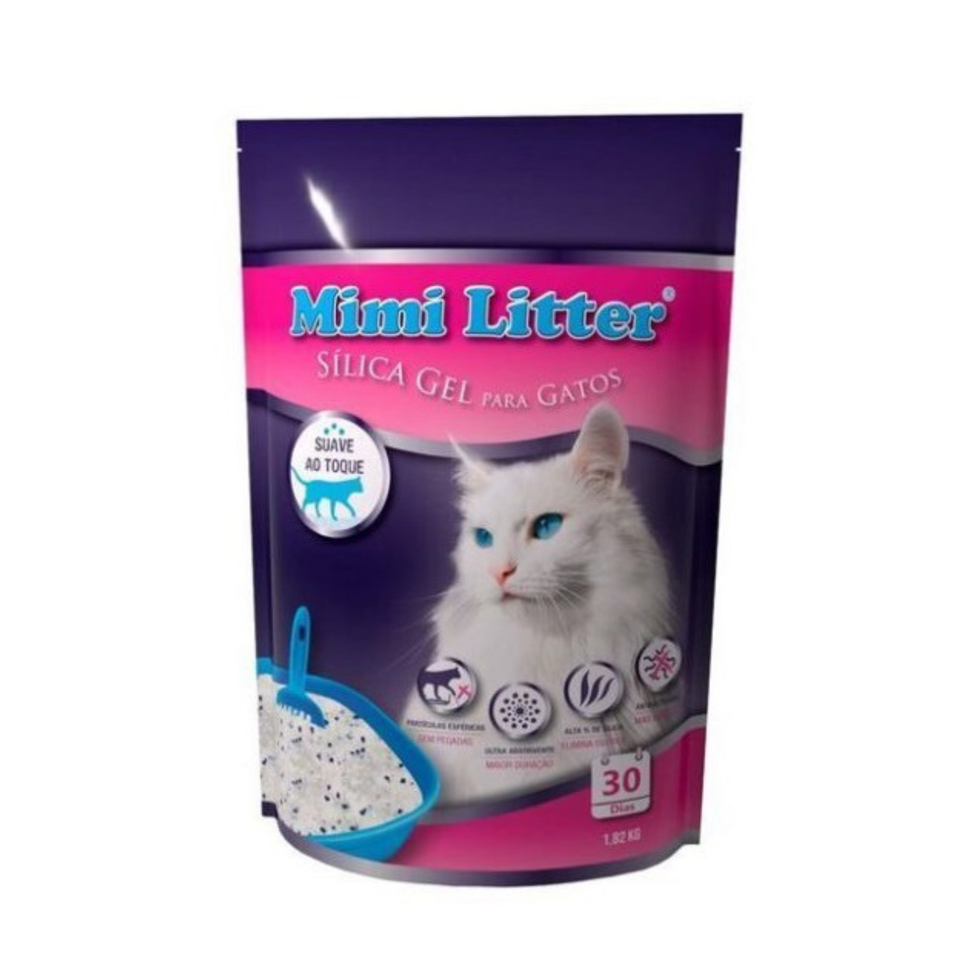 Areia sílica suave ao toque para gatos com alto poder de absorção.