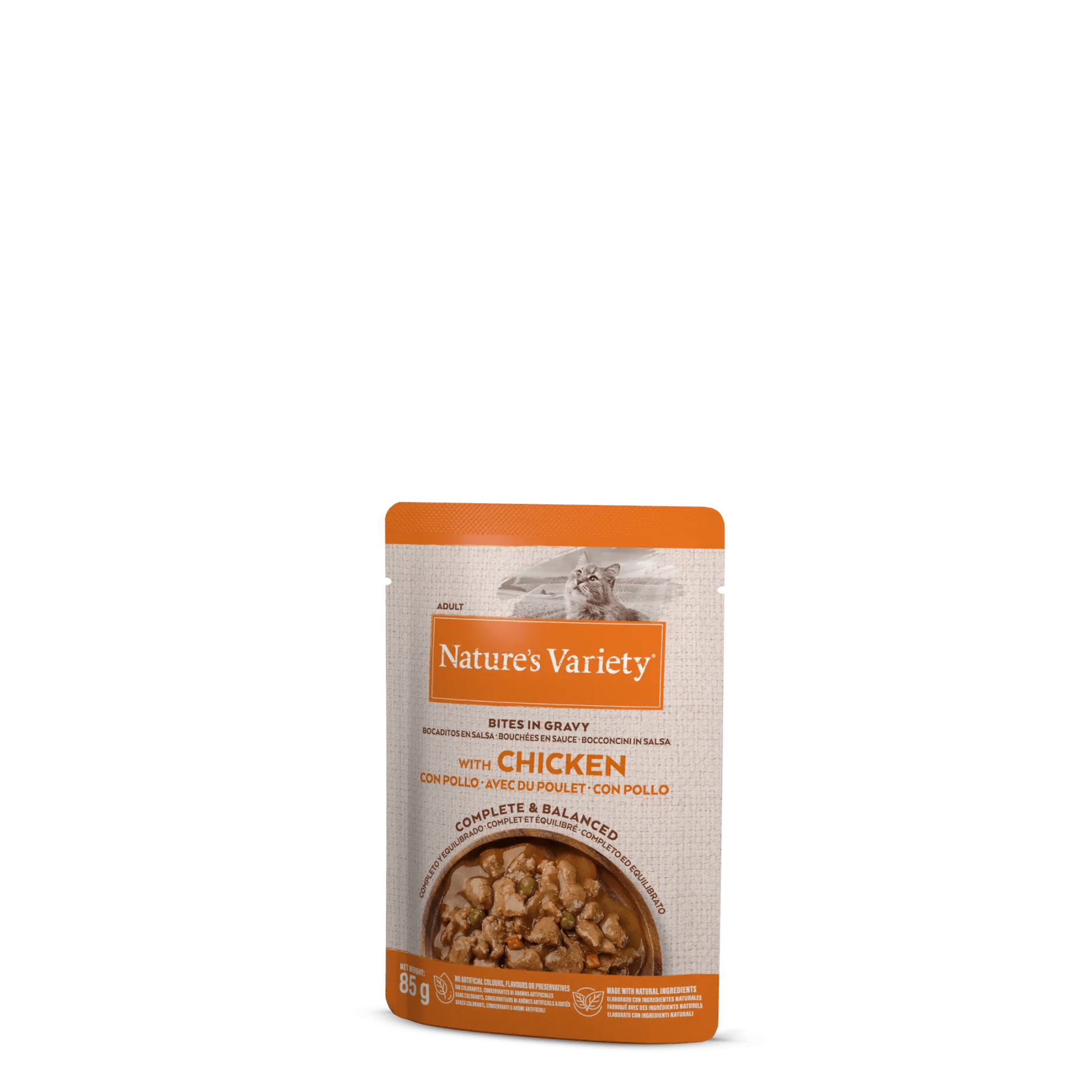 Frango* 16%, aves de capoeira* 12%, porco* 5%, amido de milho, proteínas de vaca e de porco, substâncias minerais, cenoura desidratada* (0,5%, equivalente a 3,4% de cenoura fresca), ervilhas desidratadas* (0,5%, equivalente a 1,8% de ervilhas frescas), açúcares., * Ingredientes naturais