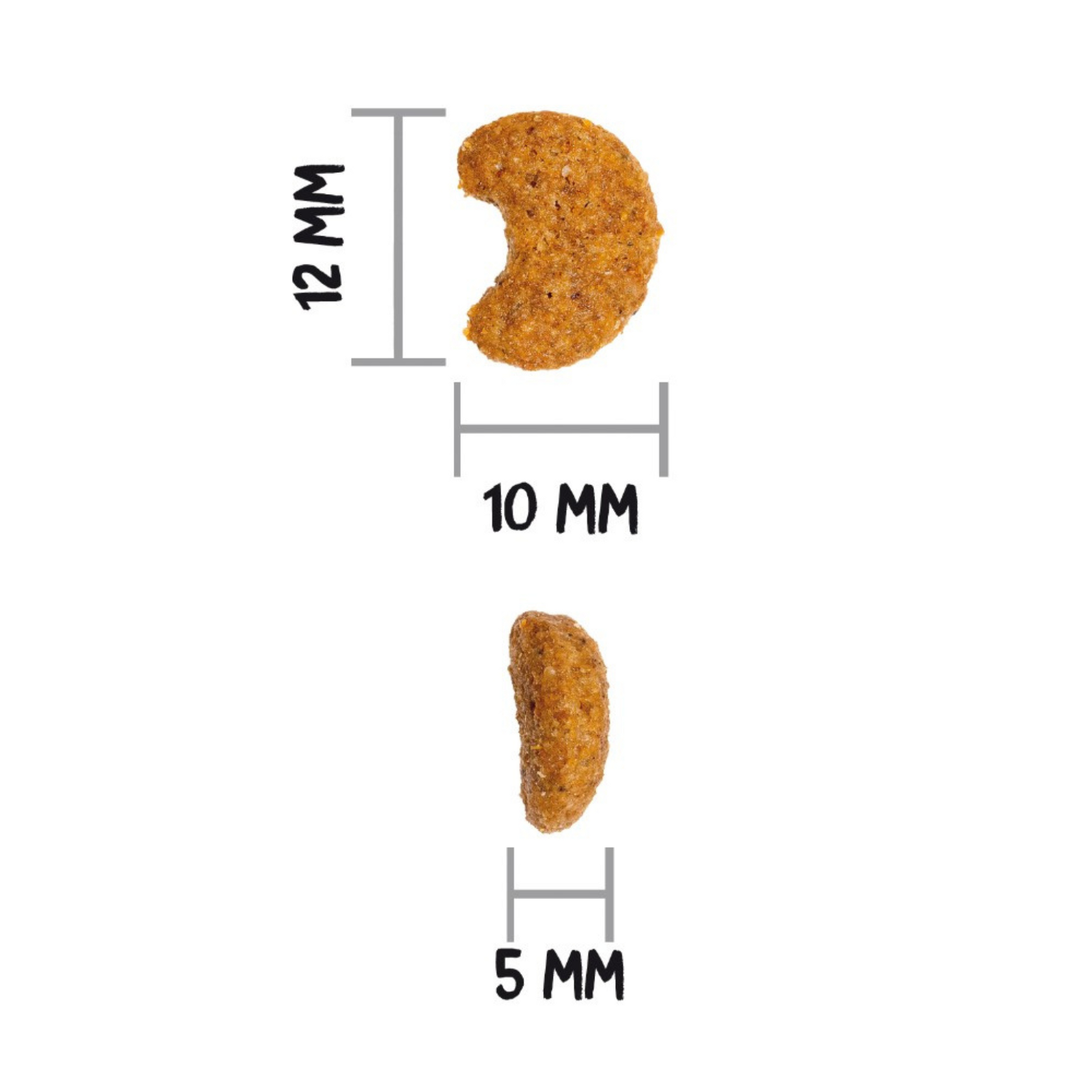 Carnes 37% (carnes desidratadas 27%, frango fresco* 10% antes da extrusão), trigo integral* (19%), gordura de frango, milho integral* (8%), ervilhas inteiras* (7%), cevada integral* (5%), arroz integral* (5%), proteínas de milho, levedura de cerveja* (1,5%), polpa de beterraba, proteína hidrolisada de frango, peixe desidratado, maçã* (1%), óleo de salmão, extrato de malte, fruto-oligossacarídeos e mano-oligossacarídeos, plantas aromáticas 0,02% (funcho*, flor de camomila*, anis verde*), yucca schidigera. *INGREDIENTES NATURAIS