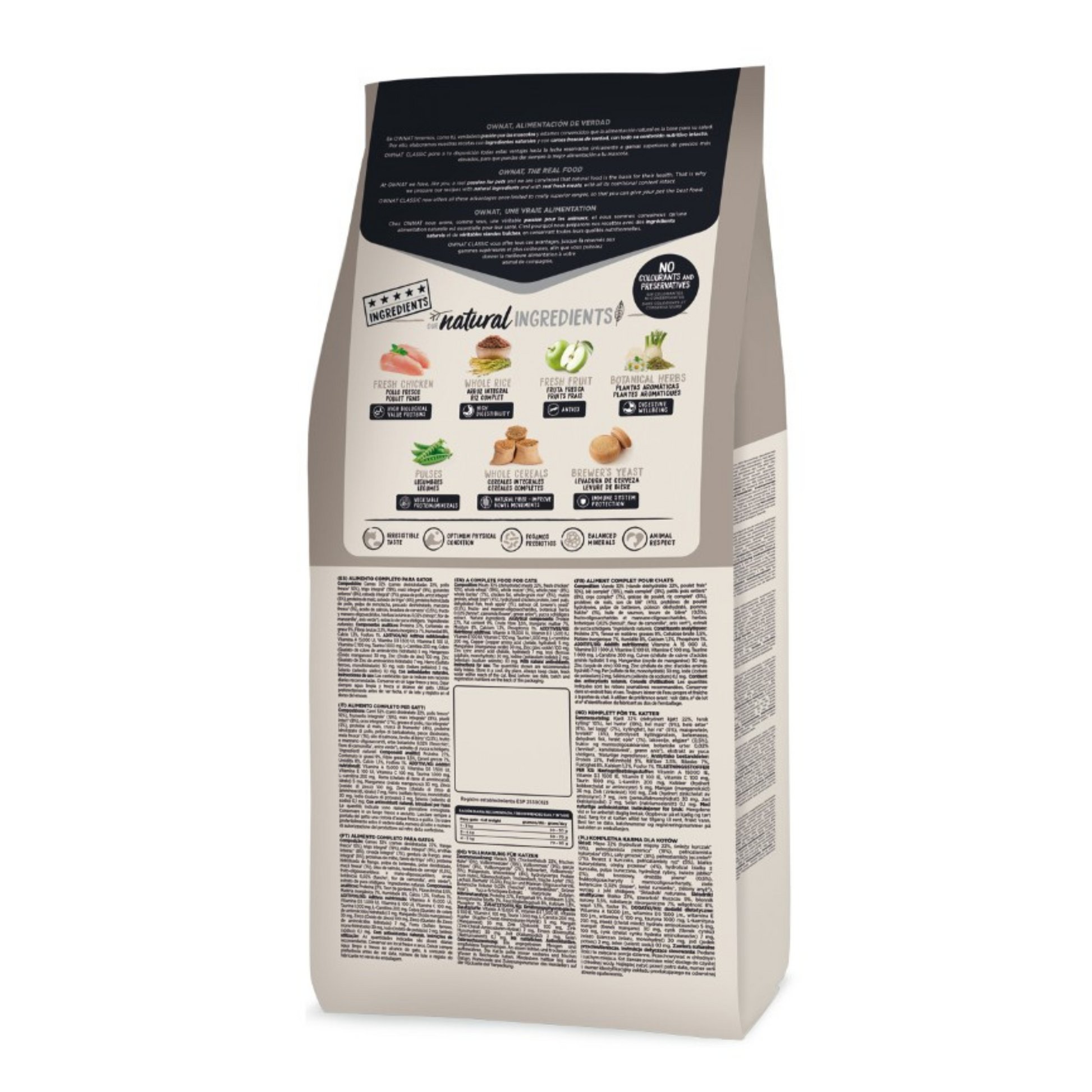 - Com ingredientes naturais: Estamos situados numa região extraordinariamente rica em recursos agrários e pecuários. Isto permite à Ownat dispor de grande parte dos ingredientes essenciais (carne, legumes e cereais) e de matérias-primas de proximidade, frescas e de qualidade inigualável, graças à nossa aposta pelos fornecedores locais.