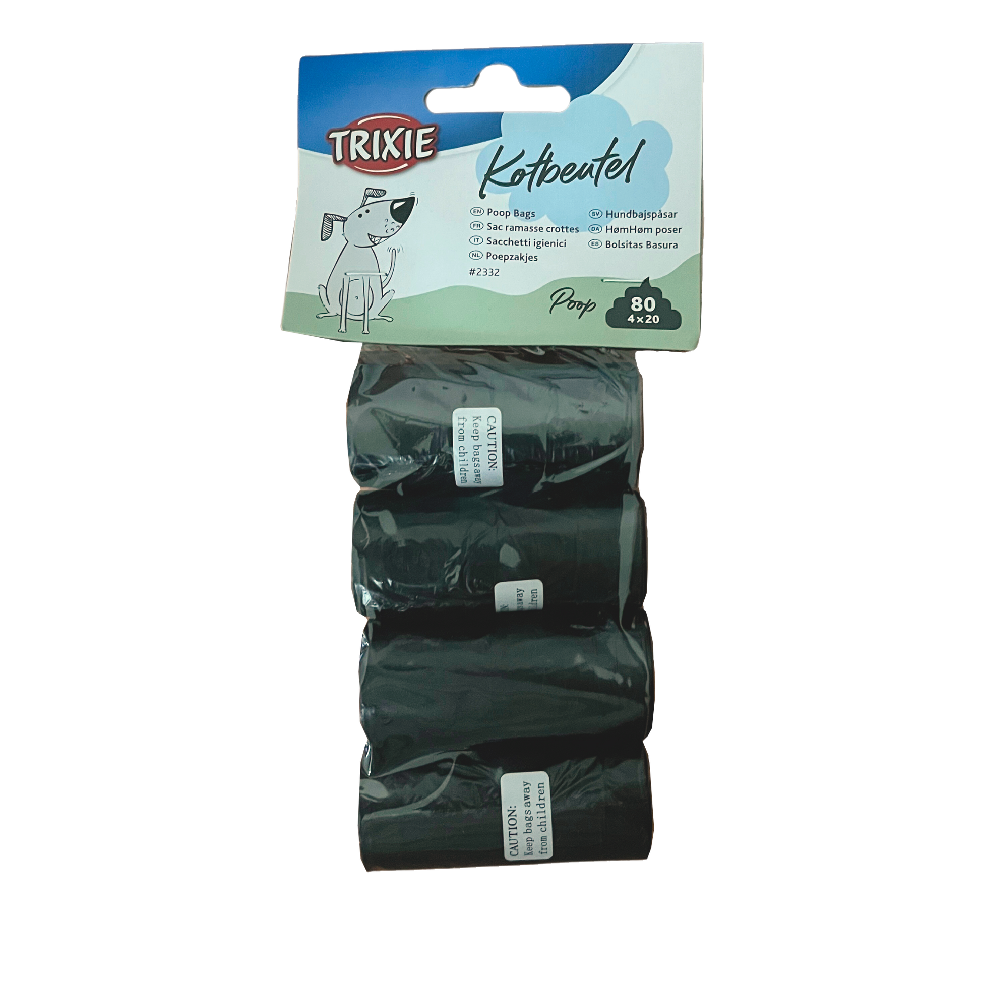Pack com 4 rolos de 20 sacos de plástico (80 sacos no total) para dejetos.