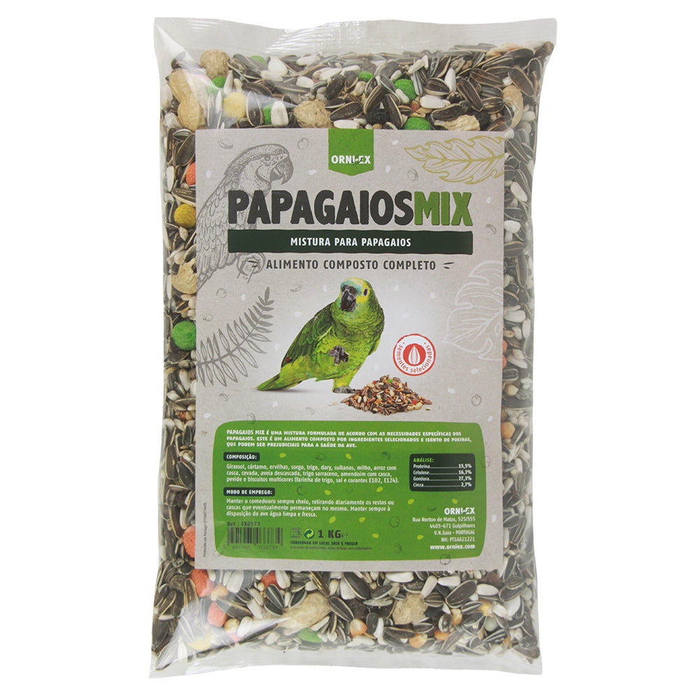 PAPAGAIOS MIX é uma mistura formulada de acordo com as necessidades específicas dos papagaios. Este é um alimento composto por ingredientes selecionados e isento de poeiras, que podem ser prejudiciais para a saúde da ave.