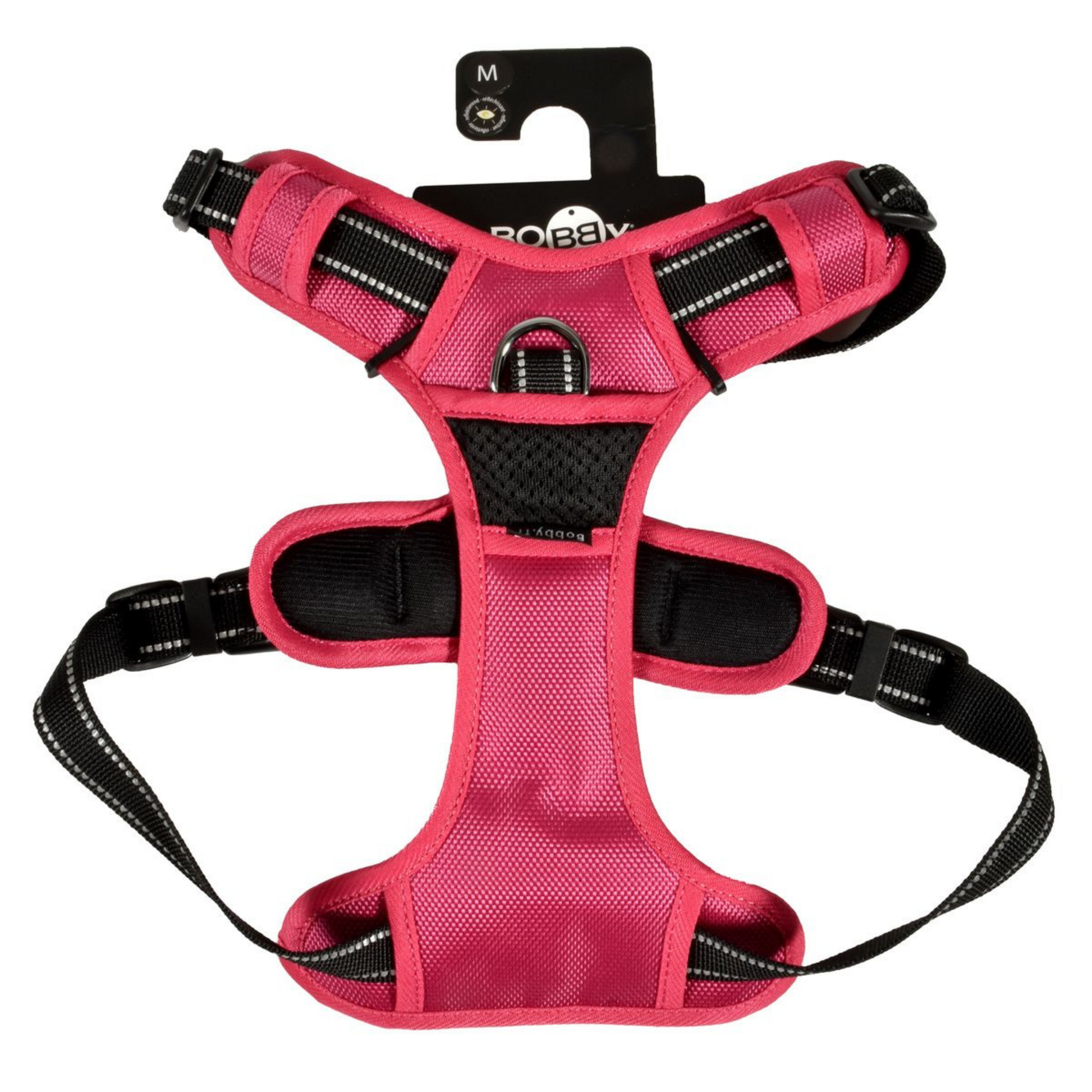 - 2 pontos de fixação, à frente e atrás: com o seu ponto de fixação situado na parte da frente do arnês, ensina o seu cão a andar a passo e reduz consideravelmente os puxões repetitivos;