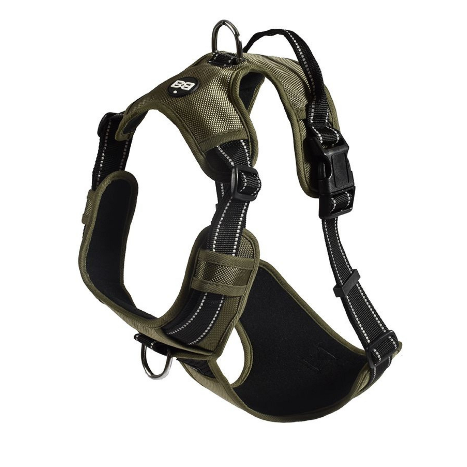 - 2 pontos de fixação, à frente e atrás: com o seu ponto de fixação situado na parte da frente do arnês, ensina o seu cão a andar a passo e reduz consideravelmente os puxões repetitivos;
