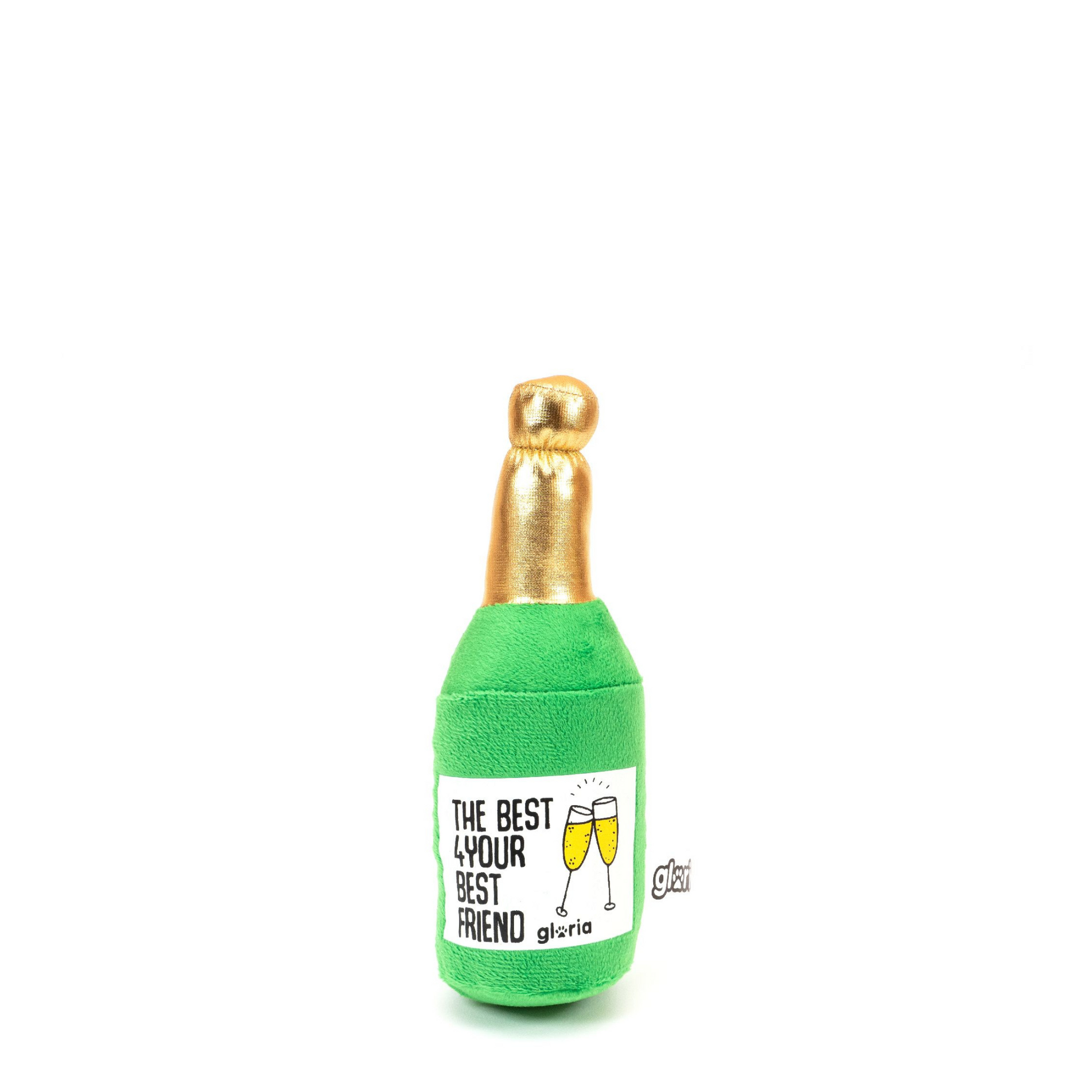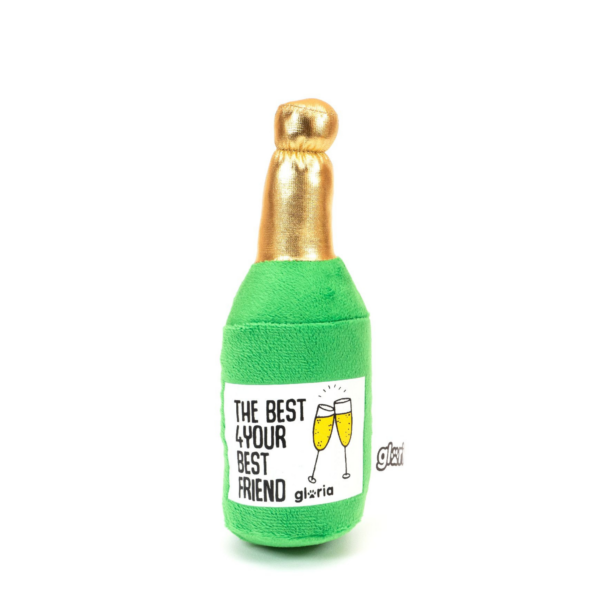Peluche divertido em forma de champanhe, ideal para festejar o aniversário do seu patudo ou uma ocasião especial!