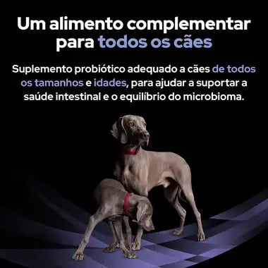 Probiótico para cães. Alimento complementar para cães adultos e cachorros, para o suporte da saúde e equilíbrio intestinais.