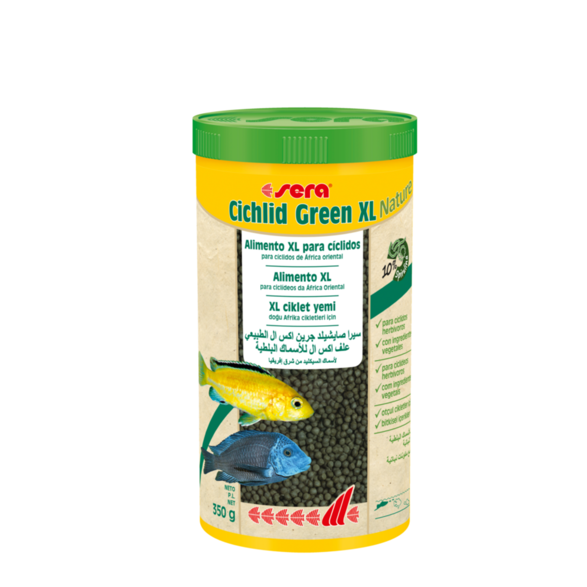 sera Granugreen Nature é o alimento base composto por granulado cuidadosamente processado, sem corantes e conservantes, para pequenos ciclídeos principalmente herbívoros e comedores de algas. Nestes incluem-se muitos dos ciclídeos da África Oriental.