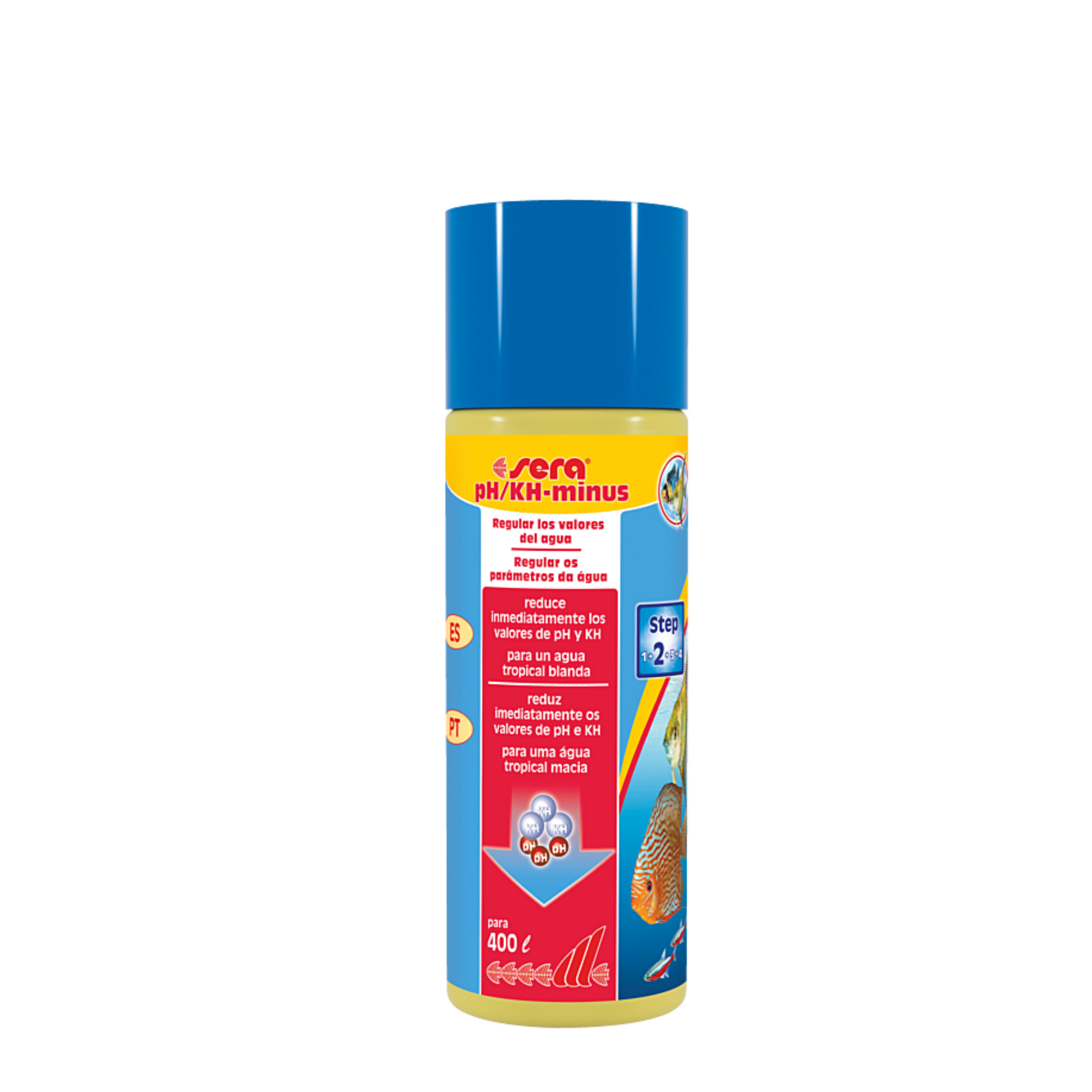 Nestes casos, sera pH/KH-minus é uma solução rápida e eficaz. Baixa e regula os valores de pH e de KH de modo imediato e preciso. Assim, cria condições adequadas, que contribuem em grande medida para a vitalidade e o bem-estar dos peixes.